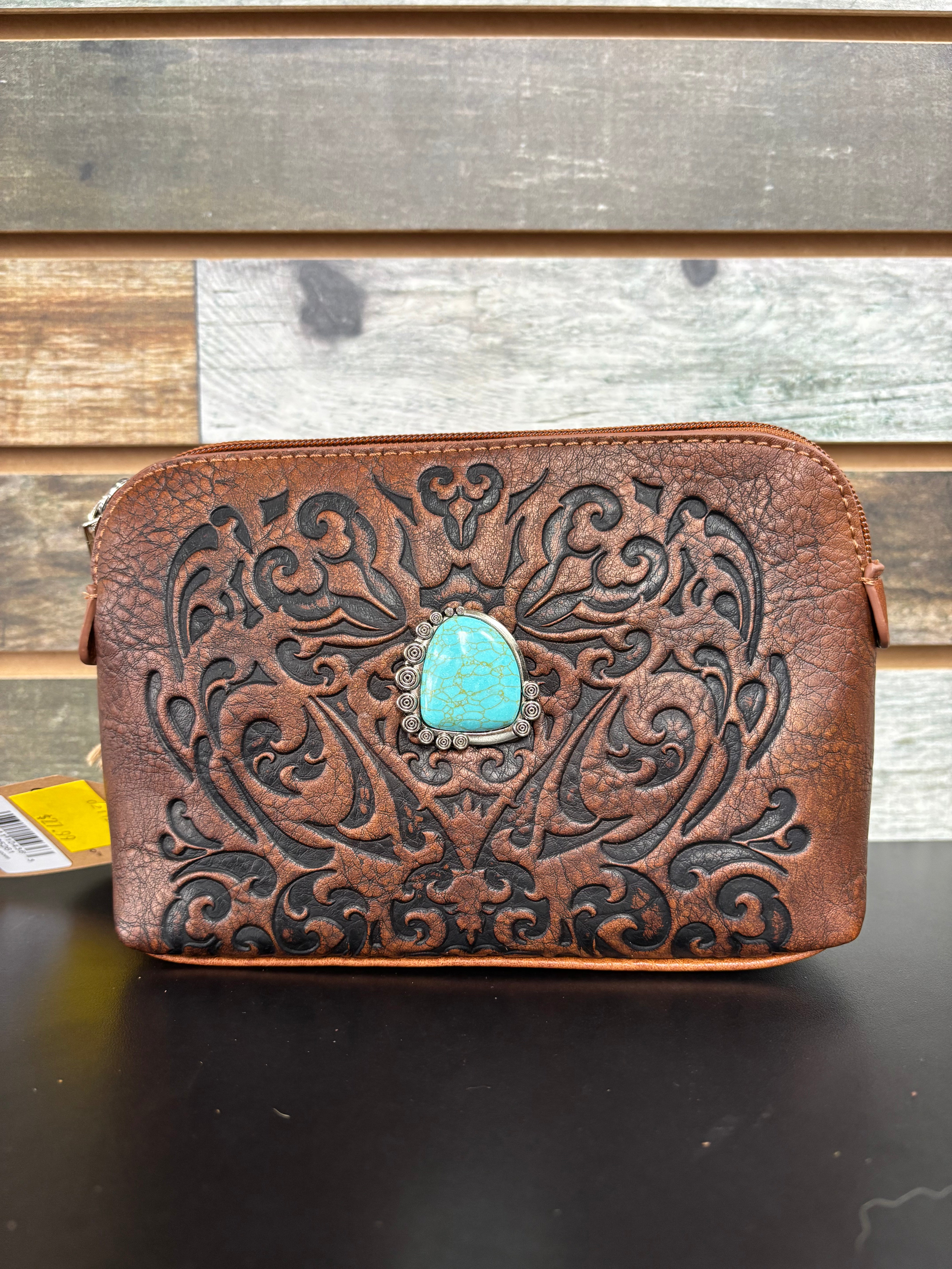 Catchfly Cosmetic Pouch Embossed with Faux Turquoise Stone