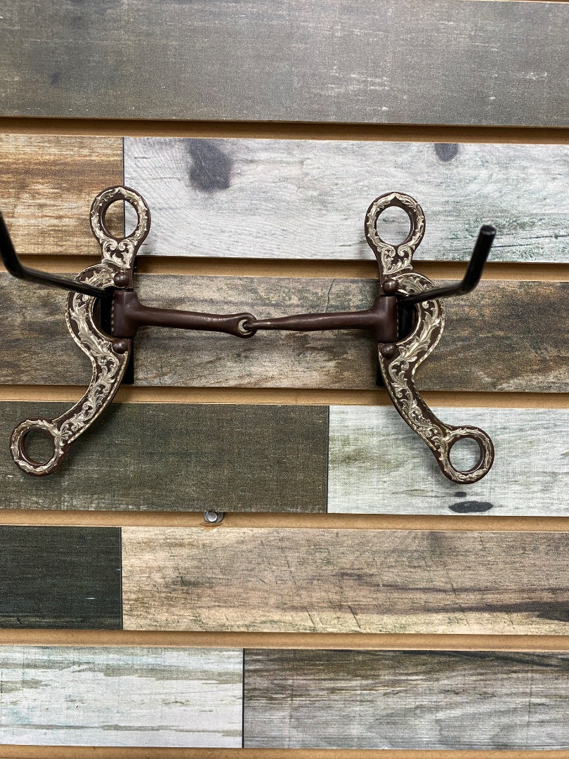 Long Shanked Wesern Jointed Curb Bit 5" With Silver Overlay Detailed Cheeks, Copper Insets on Sweet Iron Mouth...Regular price $125.00Sale price $125.00 Regular priceUnit price per -