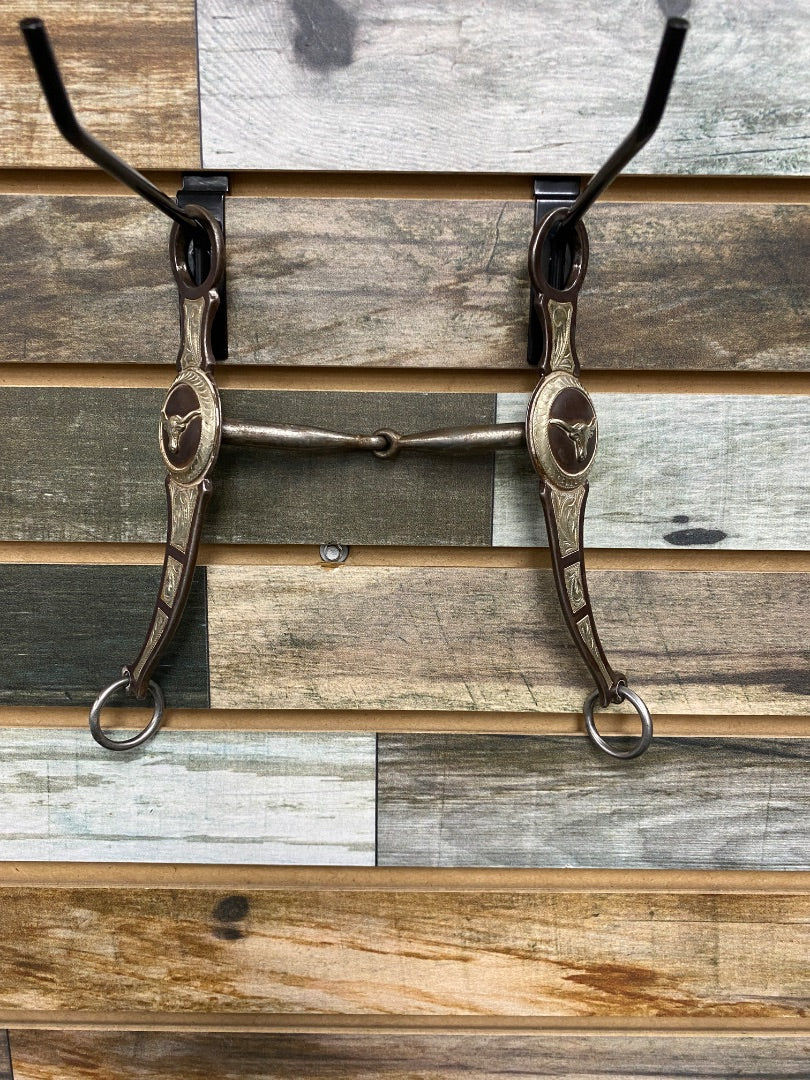 Long Shanked Jointed CurbBit with Copper Insets & Sterling Engraving and Longhorn Conchos SRSRegular price $40.00Sale price $40.00 Regular priceUnit price per -