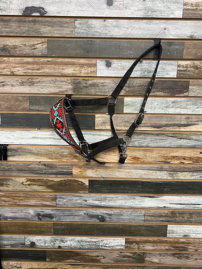 USED Nylon Halter w/ Beaded Leather Nose Band Horse