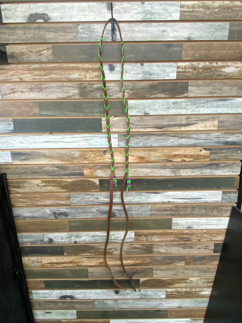 Nylon Laced Leather Reins Green and Medium Oil with Green BeadsRegular price $15.00Sale price $15.00 Regular priceUnit price per -