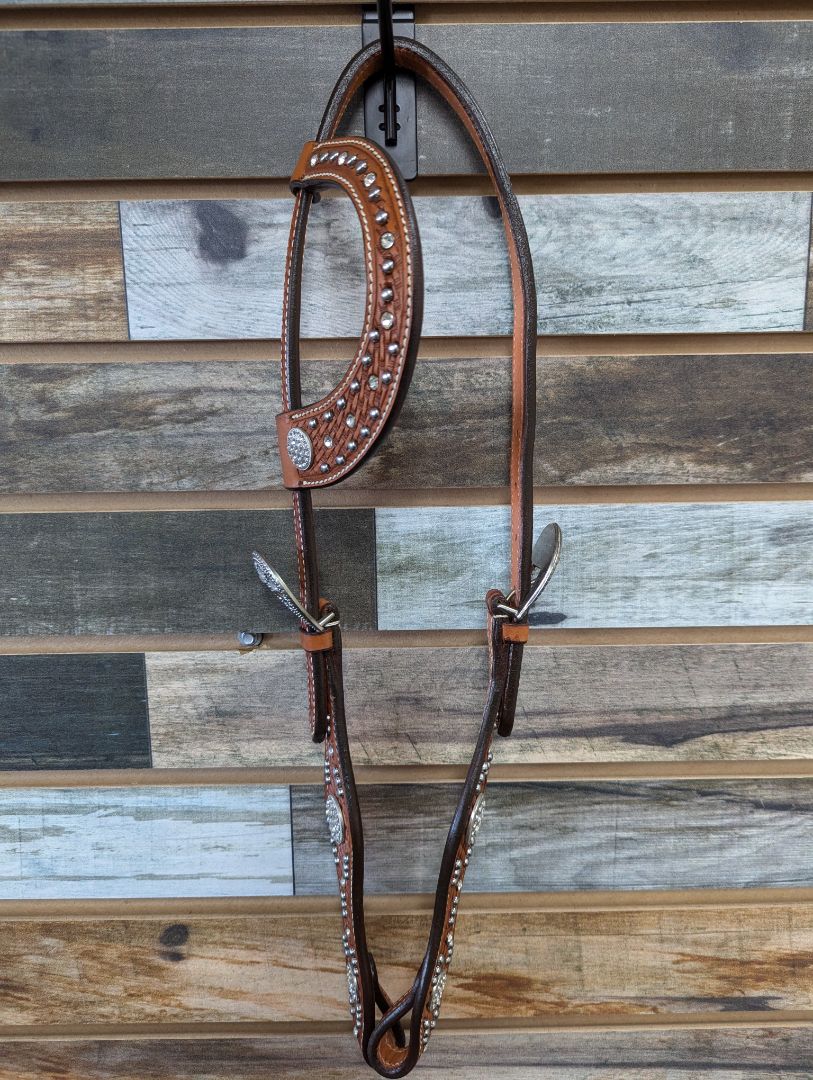 Silver Bling Single Ear Western Headstall Horse Medium Oil