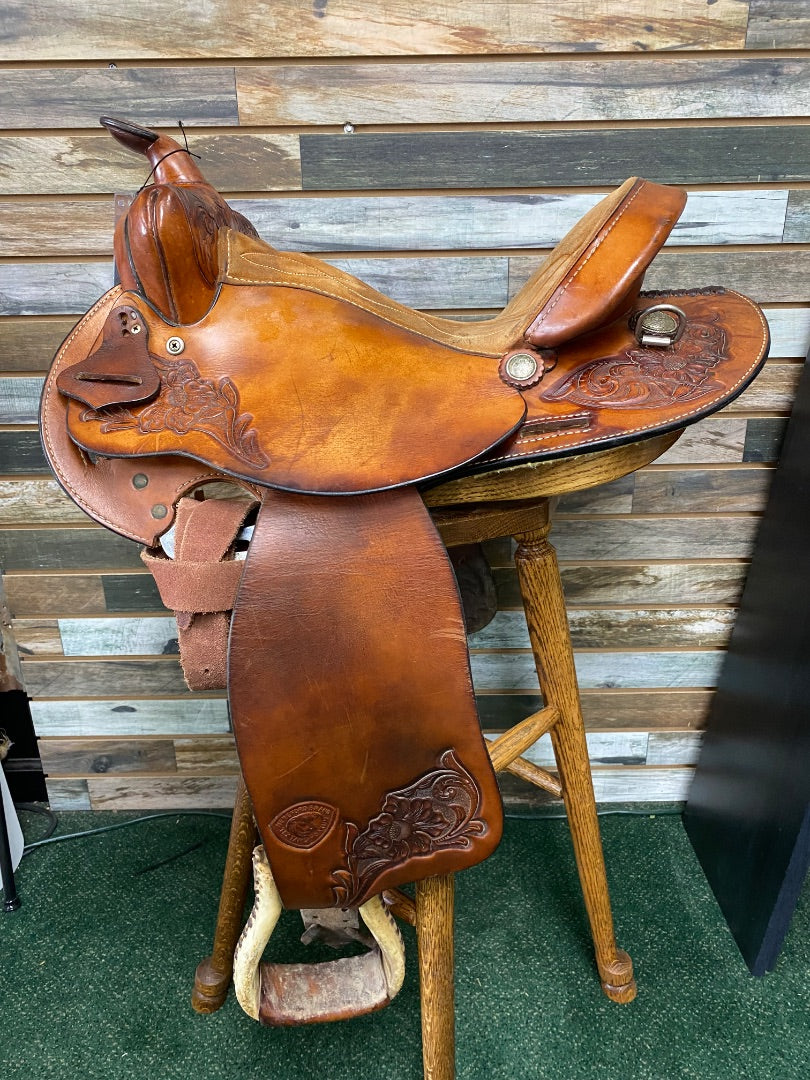 Used Royal Platinum Poley Australian Saddle 15" Seat Comes with Saddle Bag Floral Tooled LeatherRegular price $185.00Sale price $185.00 Regular priceUnit price per