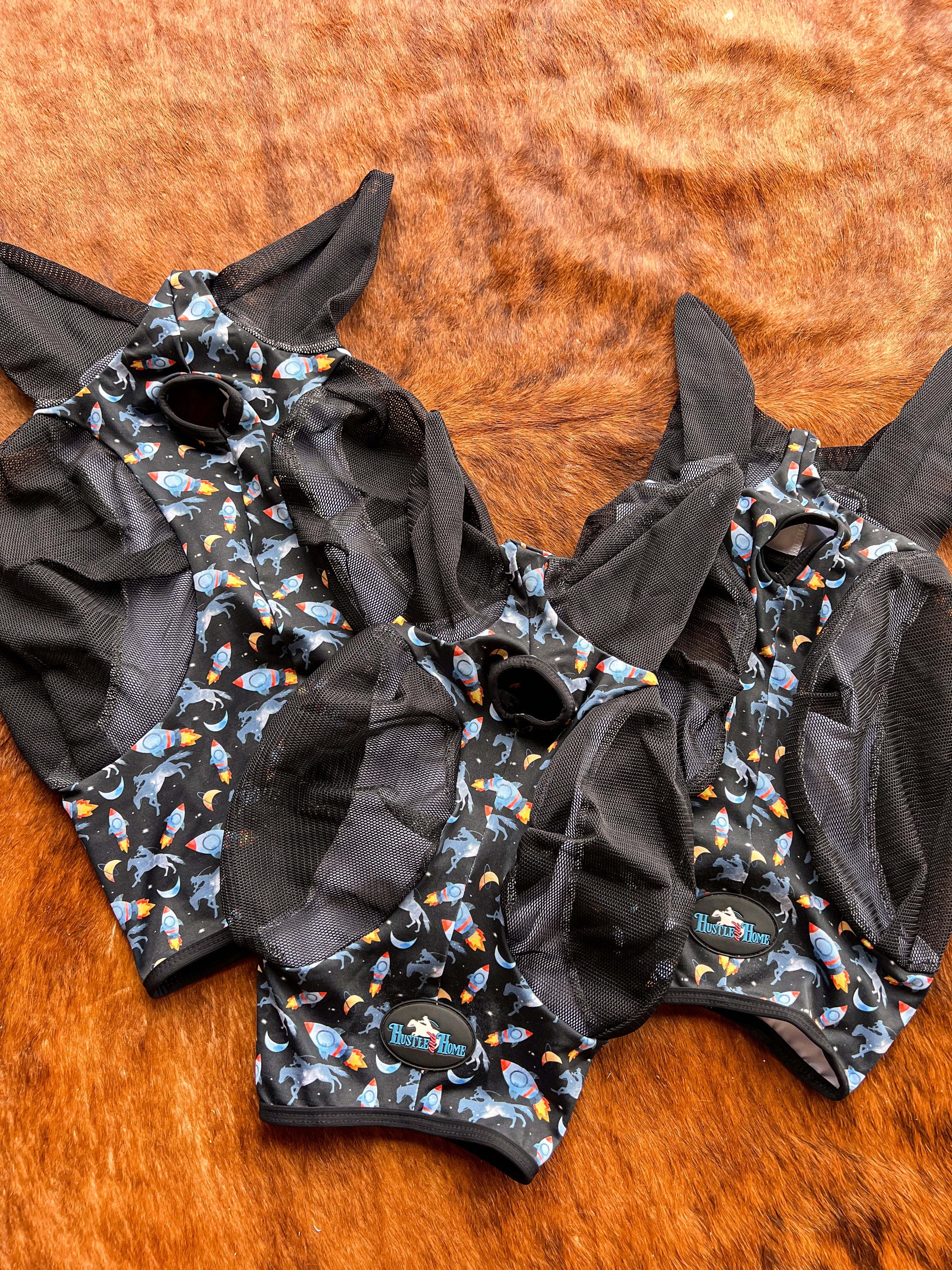 •pull on style fly mask in exclusive Hustle and Home Rocket Donkey design •soft stretchy Lycra with binding...Regular price $39.99Sale price $39.99 Regular priceUnit price per