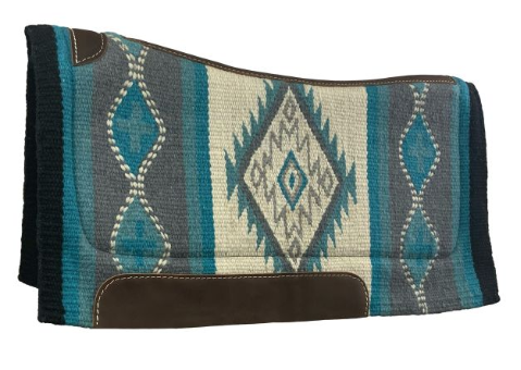 Showman 34" x 36" Wool Top Contoured Memory Felt Bottom Saddle Pad – Teal Navajo Diamond
