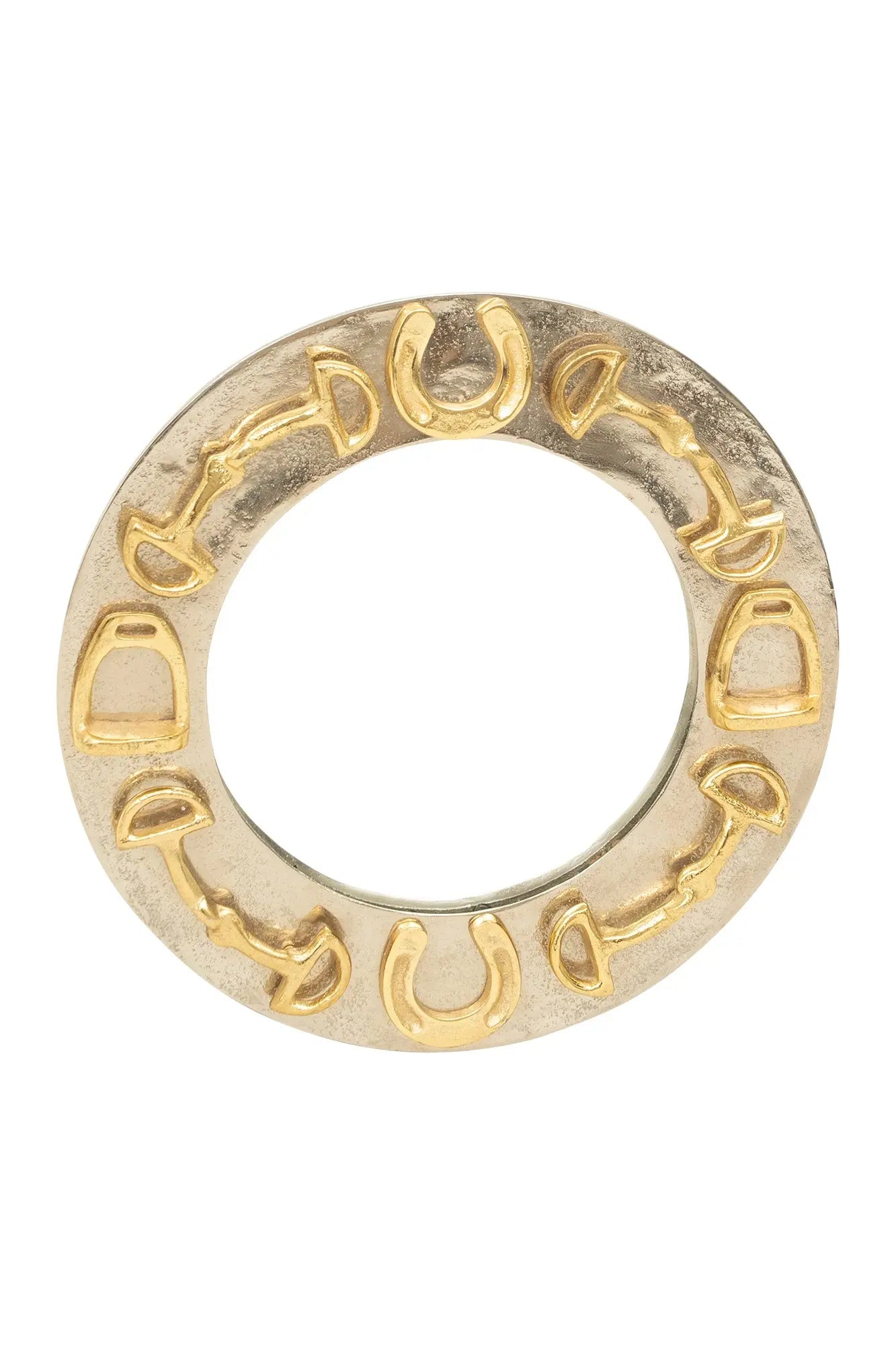 Huntley Equestrian Decorative Round Mirror with Horse shoes, Stirrups, and Bits, Gold