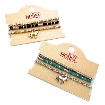 Wyo Horse Jewelry - Prancing Horse Beaded Bracelet - Silver - Package (3)