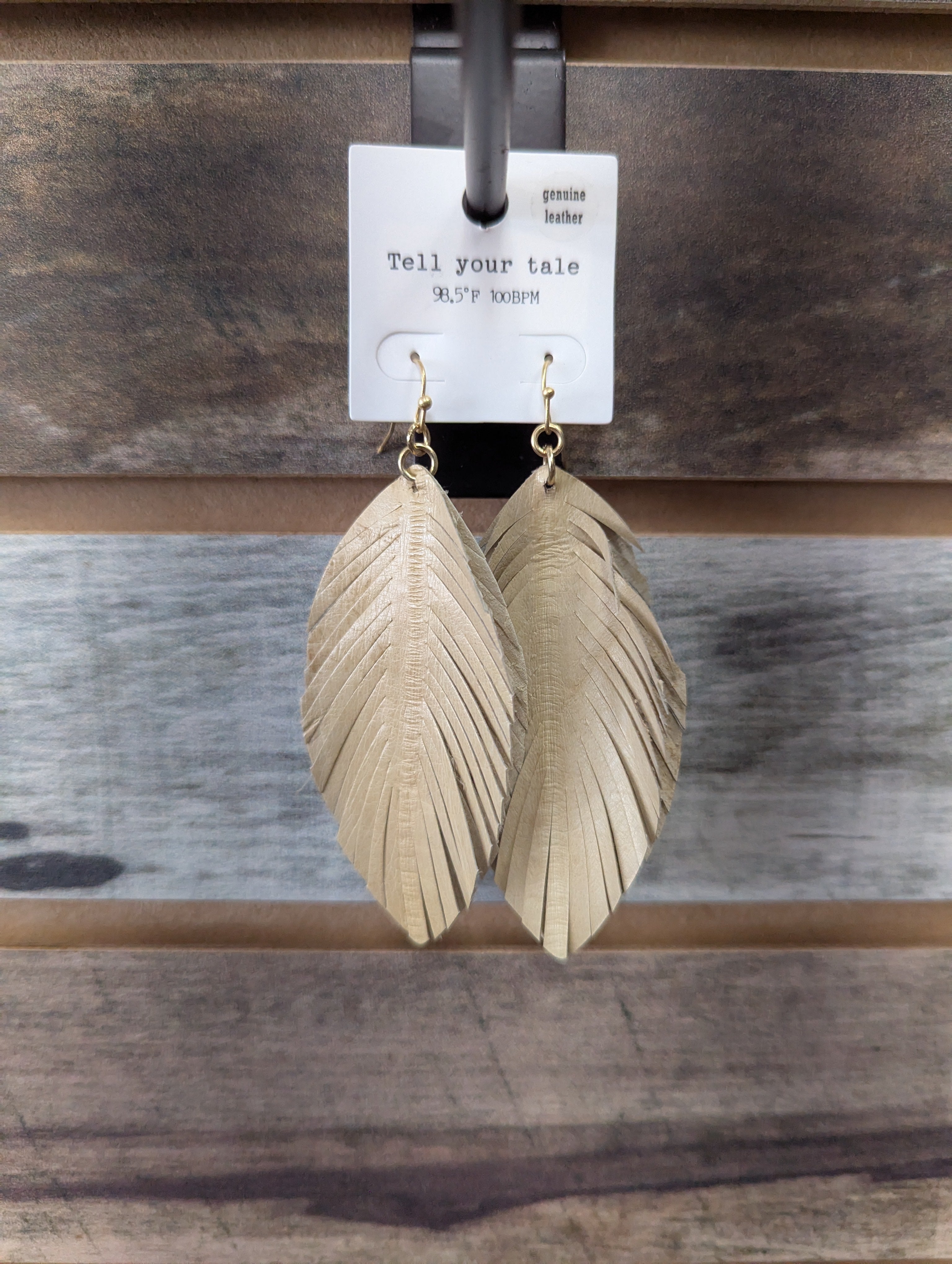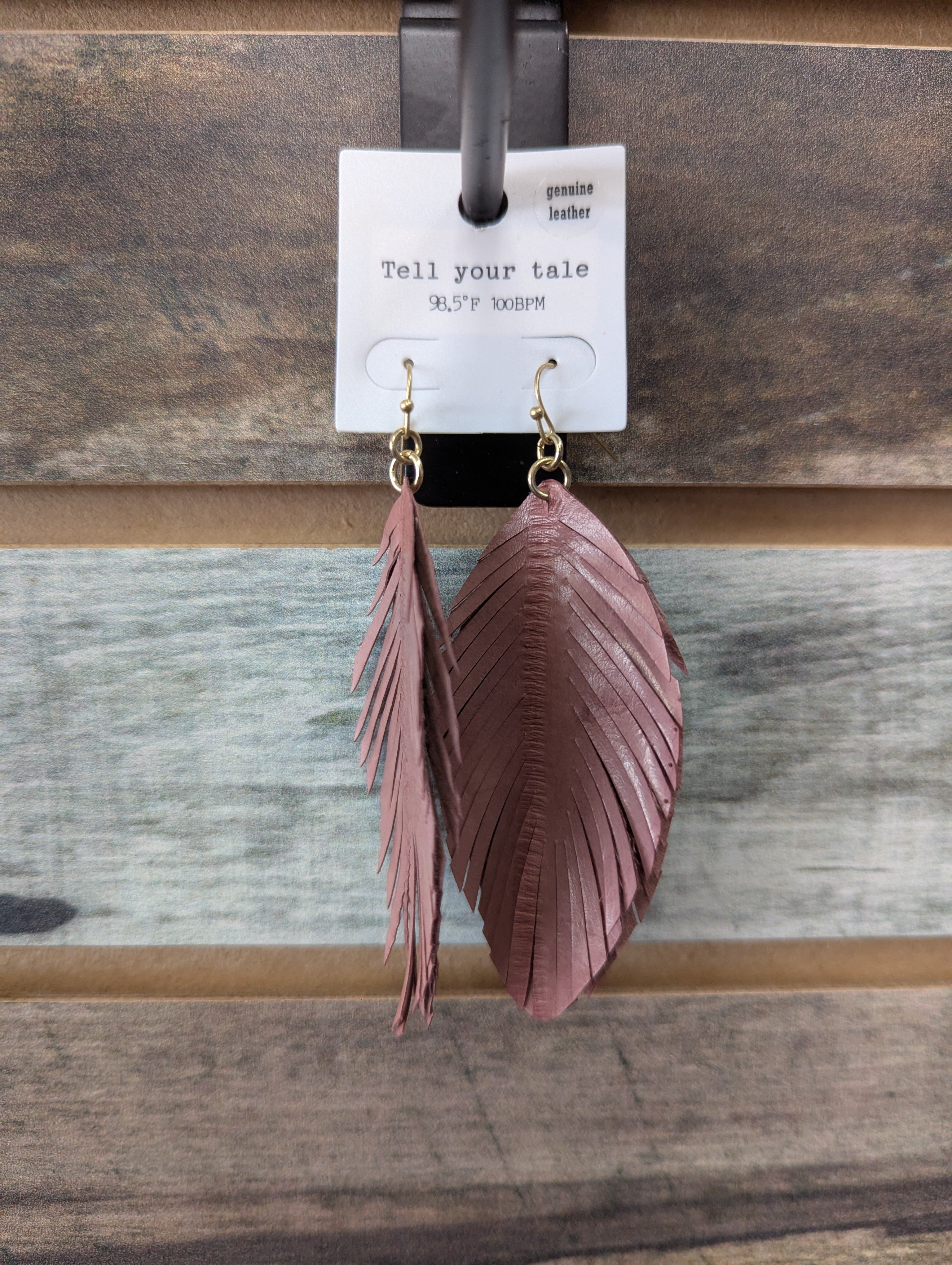 Fun leather feather style drop earrings, in your choice of beige or pink.Regular price $17.99Sale price $17.99 Regular priceUnit price per -