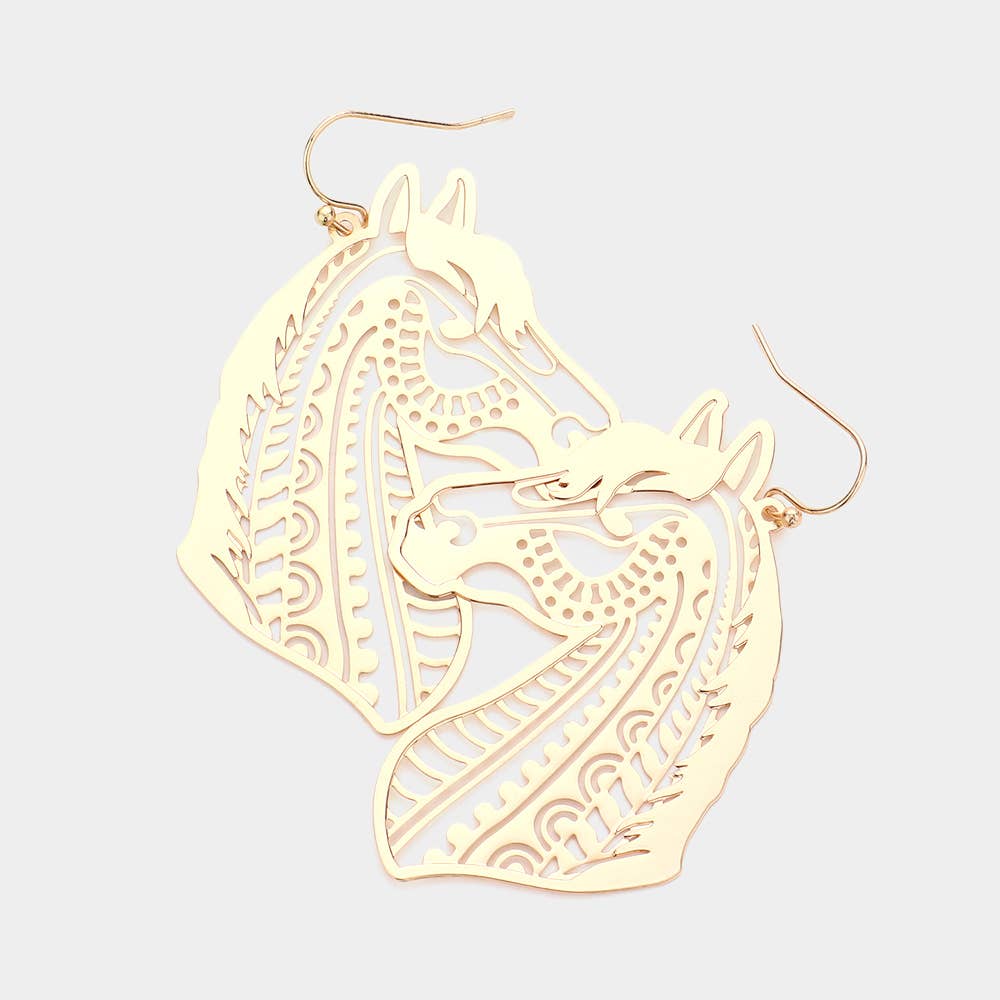Cut Out Brass Metal Horse Dangle Earrings • Size : 1.5" X 2.3" • Fish Hook Back •...Regular price $9.99Sale price $9.99 Regular priceUnit price per -