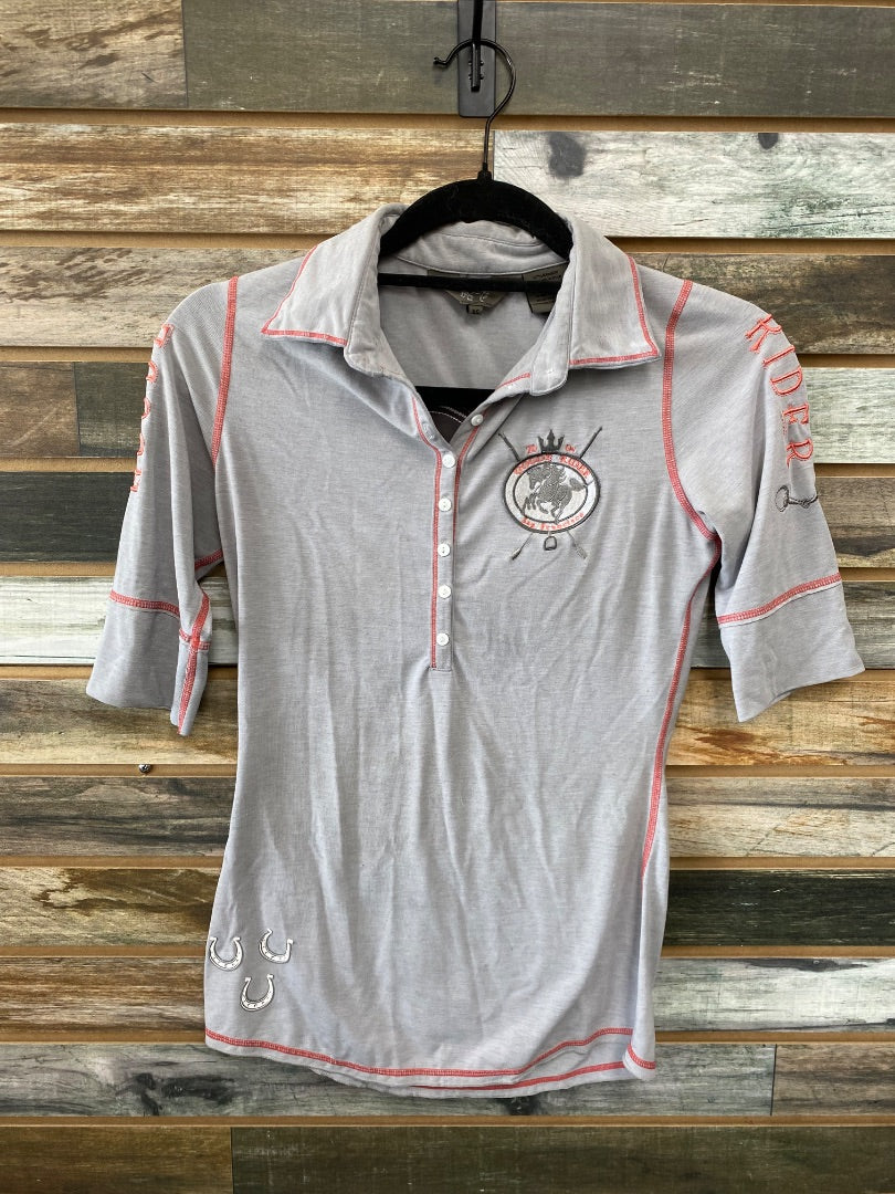 USED Goode Rider SS Polo XS GraySS polo Shirt XS with Goode Rider patch on front and Heart patch on back that says "Love...Regular price $35.00Sale price $35.00 Regular priceUnit price per