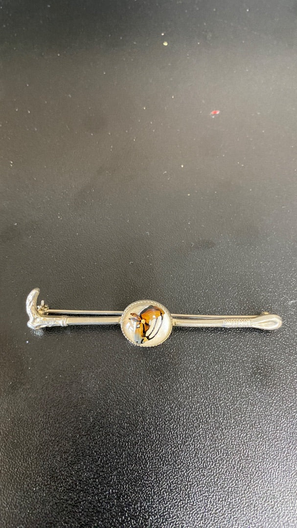 USED Golden Horseshoe Equestrian Stock Pin Silver/Brown