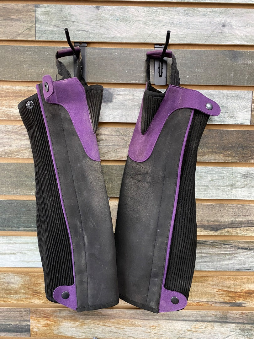 USED Ladies Half Chaps Large Black/Purple
