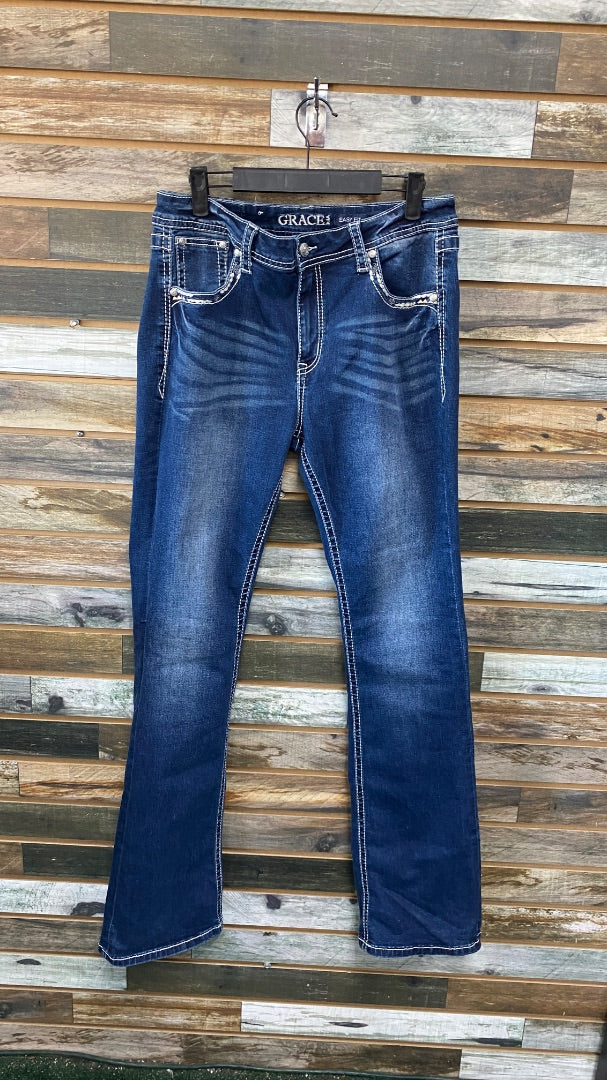Grace LAdies Straight-Cut Jeans with Western Style Embroidery on Back Pockets, Size 32Regular price $50.00Sale price $50.00 Regular priceUnit price per -