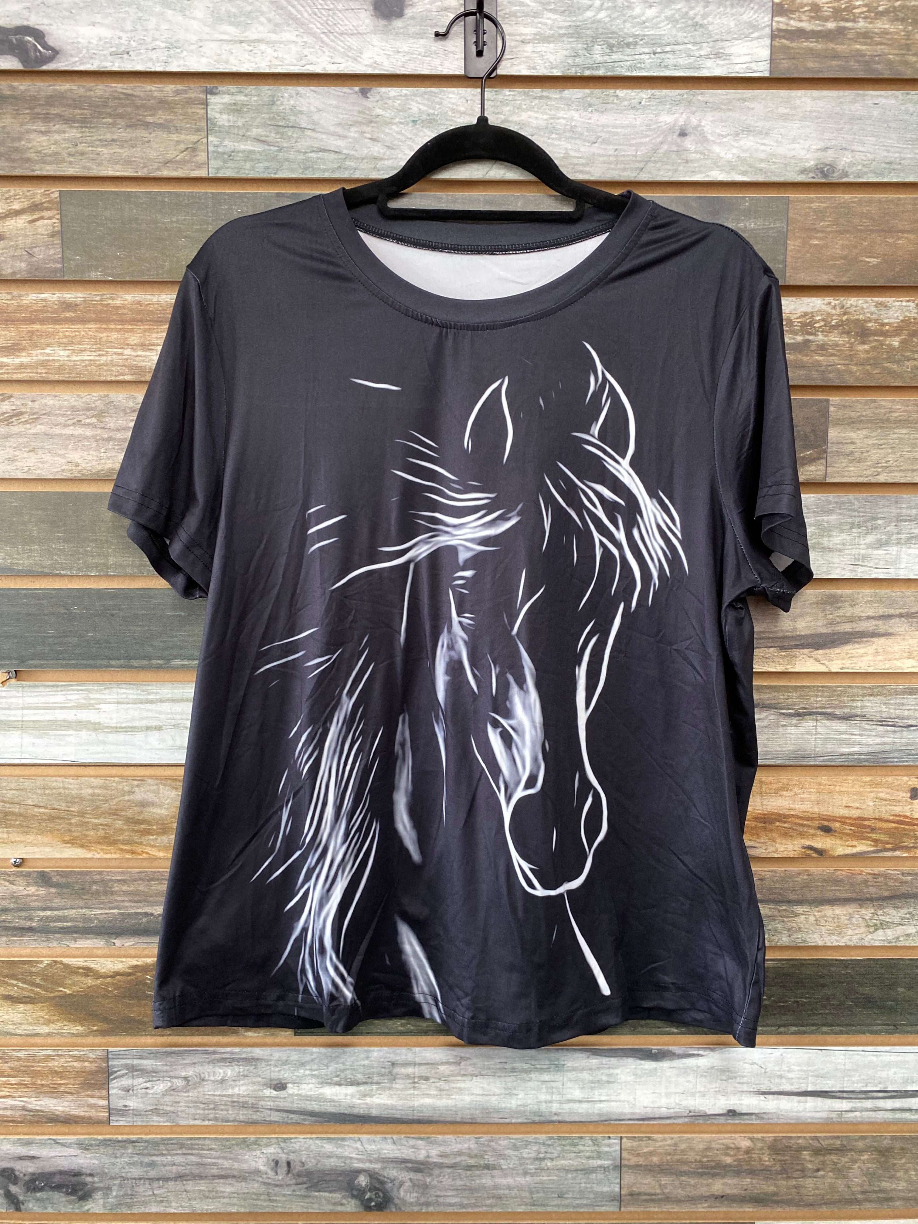 Black loost t-shirt with an abstract horse printed on it.Regular price $16.99Sale price $16.99 Regular priceUnit price per -