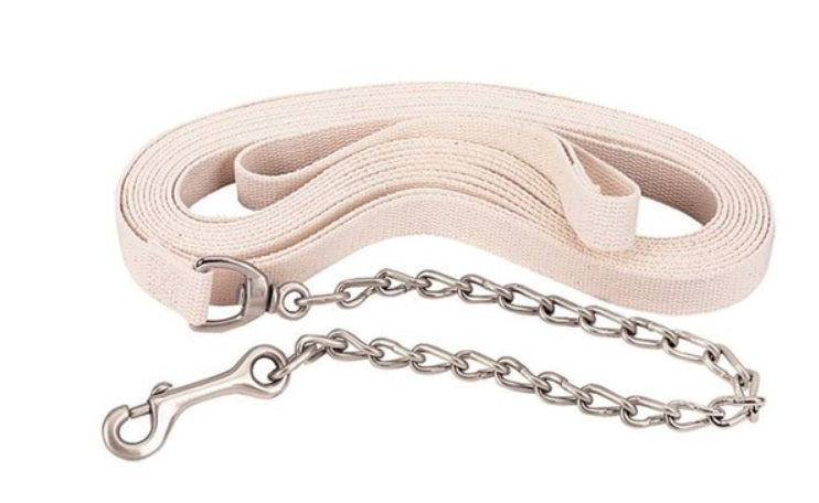 This flat off-white cotton lunge line features a durable nickel plated chain end. Measures 1" x 27'.Regular price $34.99Sale price $34.99 Regular priceUnit price per -