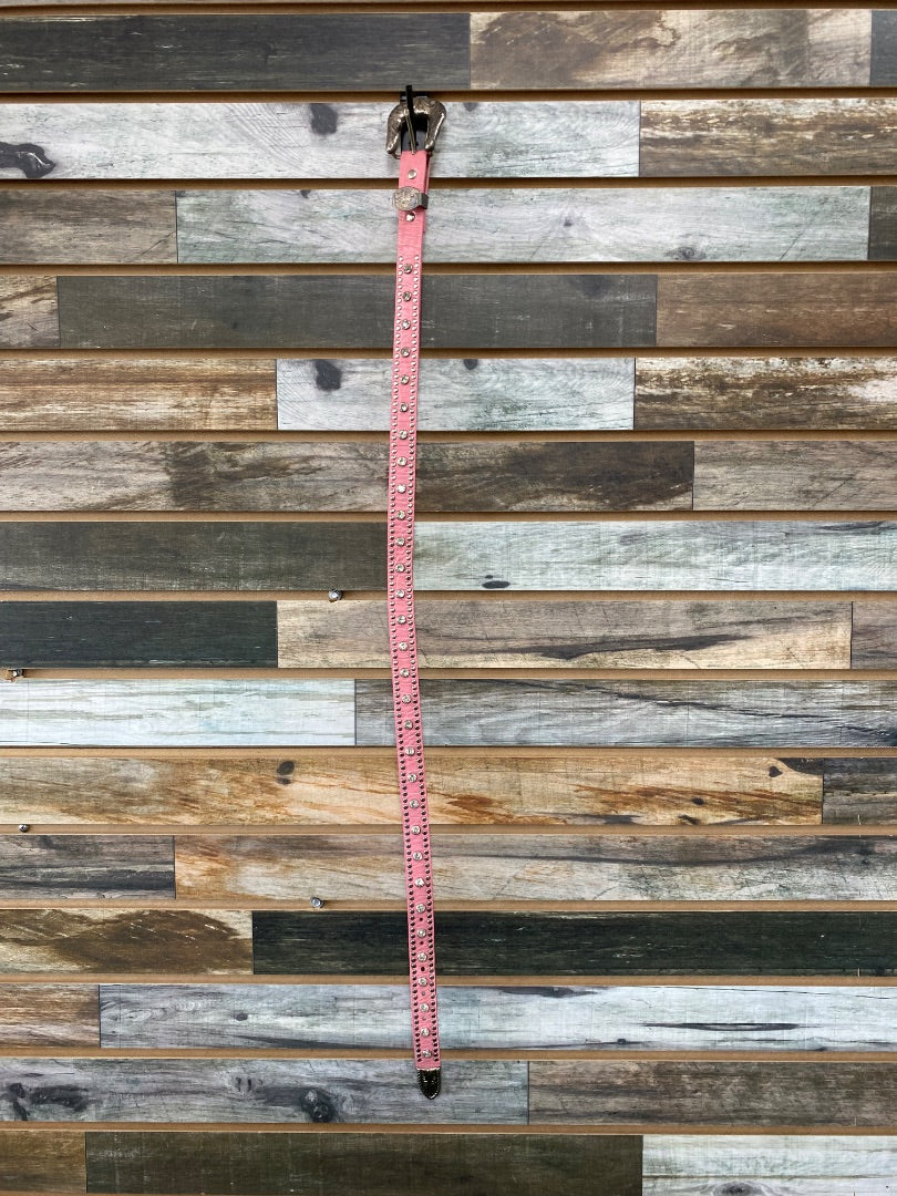 Used Nacona Ladies belt Pink/Silver with Gems Medium Genuine LeatherRegular price $25.00Sale price $25.00 Regular priceUnit price per -