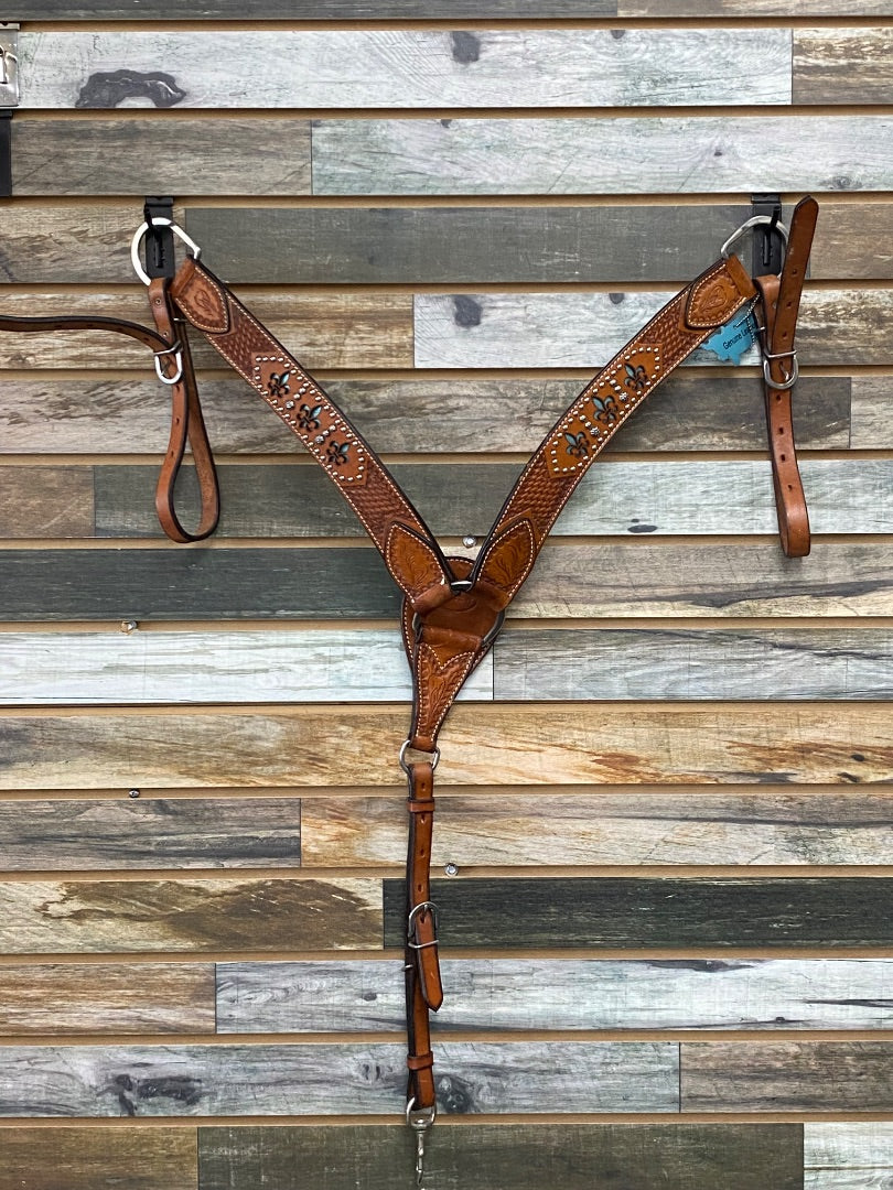 Western Breastcollar. - Medium Oil - Basketweave Tooling - Features Light Blue Fleur De Lis Pattern Customer, if...Regular price $45.00Sale price $45.00 Regular priceUnit price per -