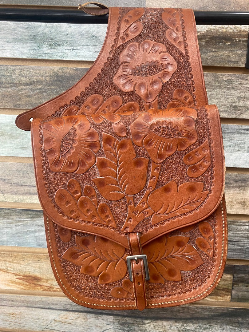 Beautifully floral tooled leather saddle bag. 9" deep by 1.5" wide.Regular price $75.00Sale price $75.00 Regular priceUnit price per -