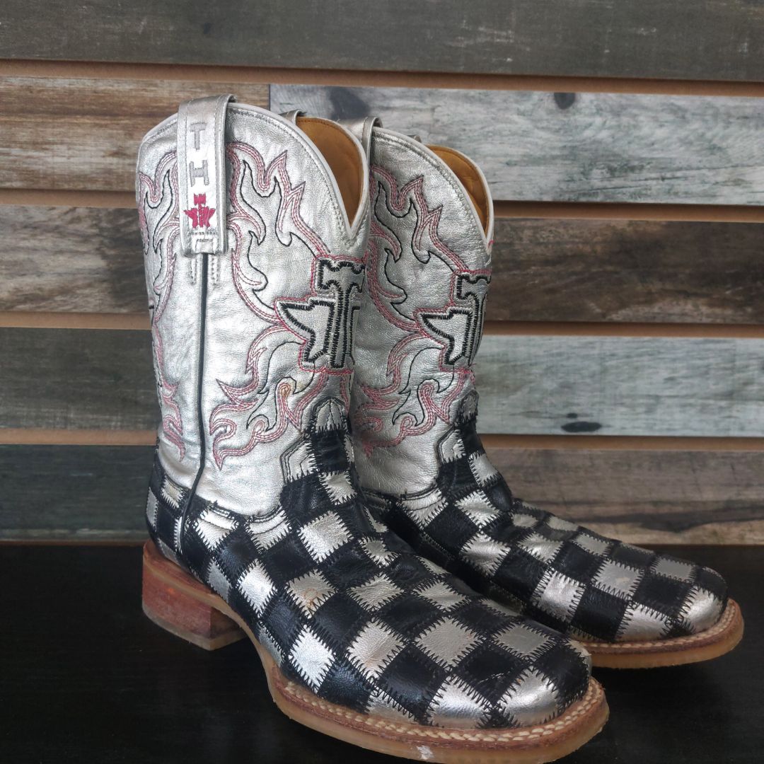 Used Checkered Shiny Metal Tin Haul Boots size 5 1/2Regular price $150.00Sale price $150.00 Regular priceUnit price per -