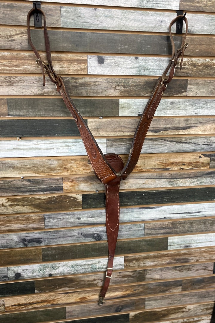1 1/2" HR Breast Collar Hand Tooled Running W SS Hardware Hot OiledRegular price $86.95Sale price $86.95 Regular priceUnit price per -