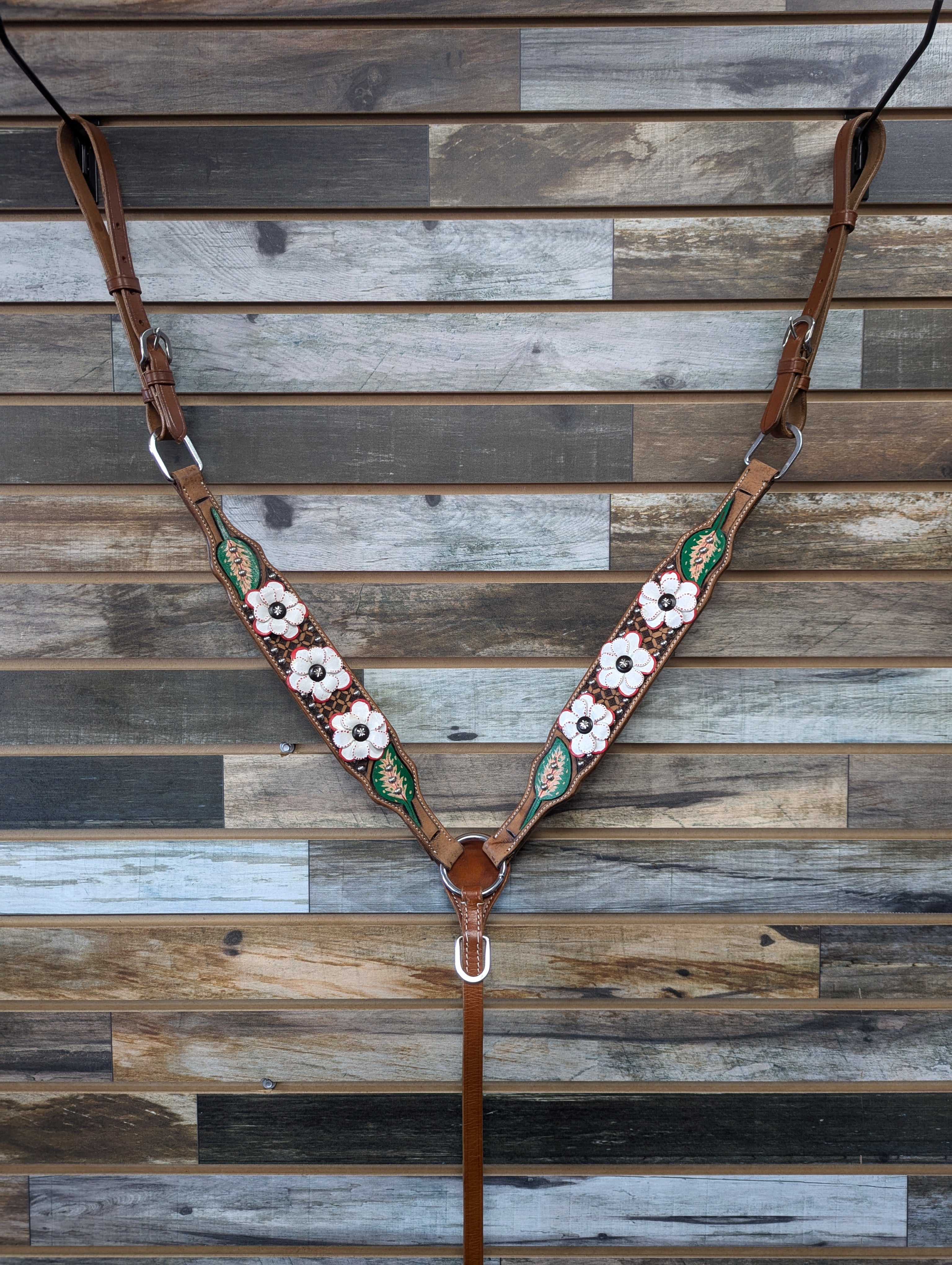 Beautiful coral flowers pop on the white background with delicate turquoise dot accents on this breast collar. A...Regular price $93.88Sale price $93.88 Regular priceUnit price per -