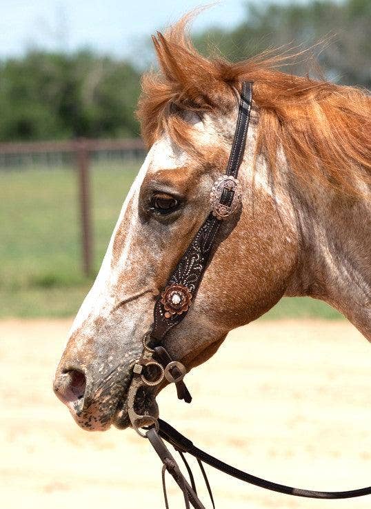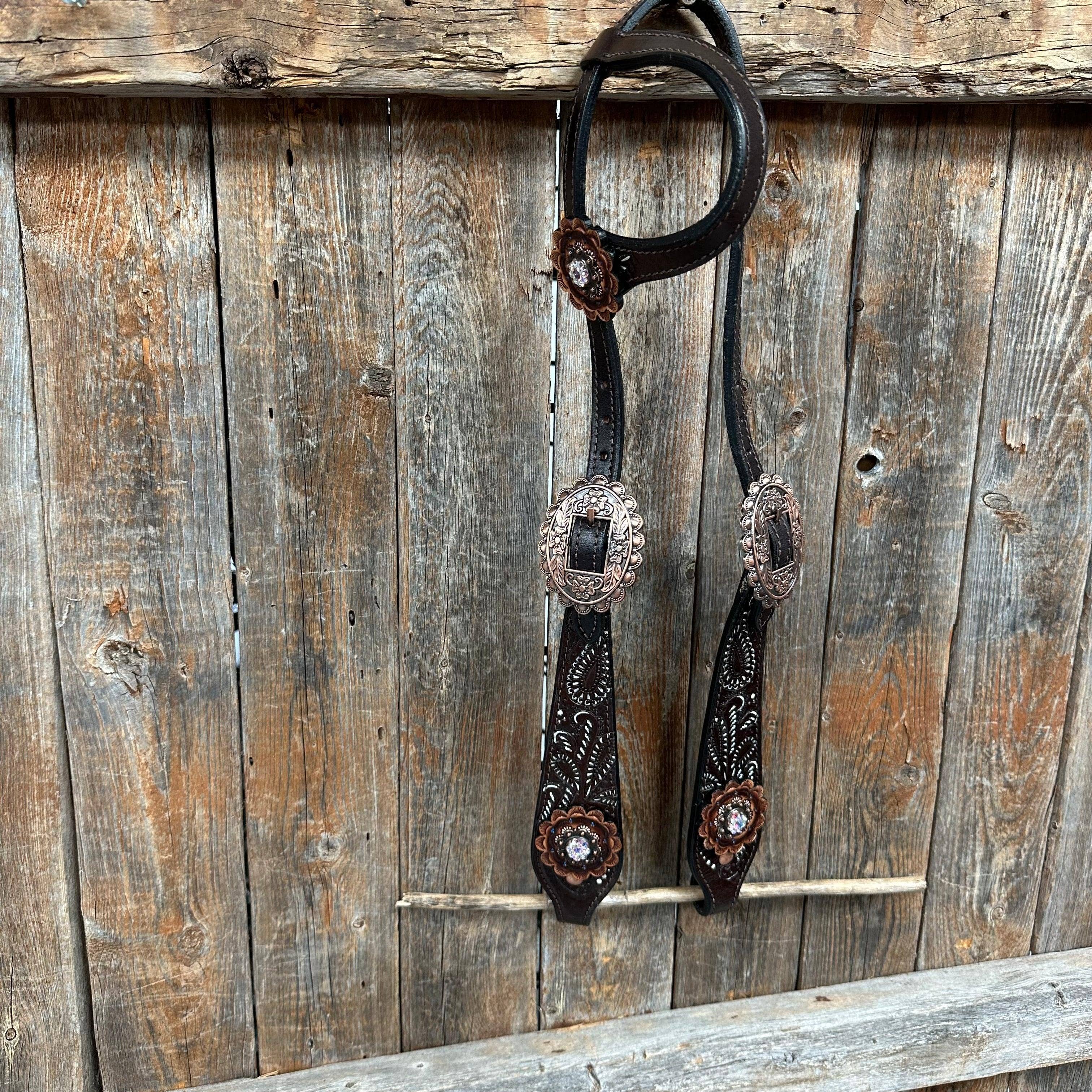 Hand Painted Paisley - Copper AB Rosette One Ear Headstall