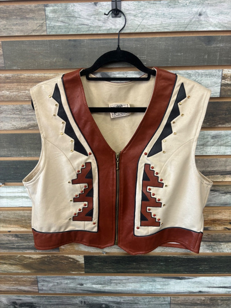 USED 1894 Authentic Ranchwear Ladies Western Vest XXL Brown/Red/Black/Tan