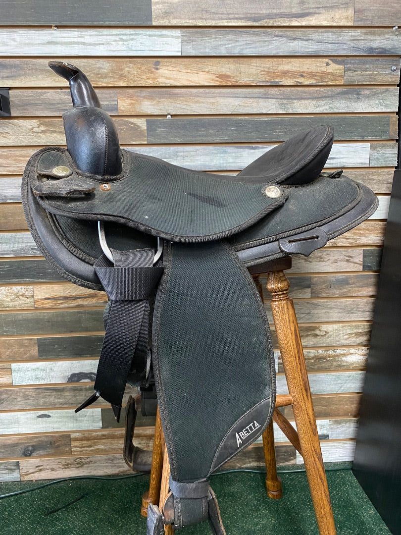 Used Abetta Round Skirt Syntheic Western Saddle 17" Seat 7" GulletRegular price $650.00Sale price $650.00 Regular priceUnit price per -