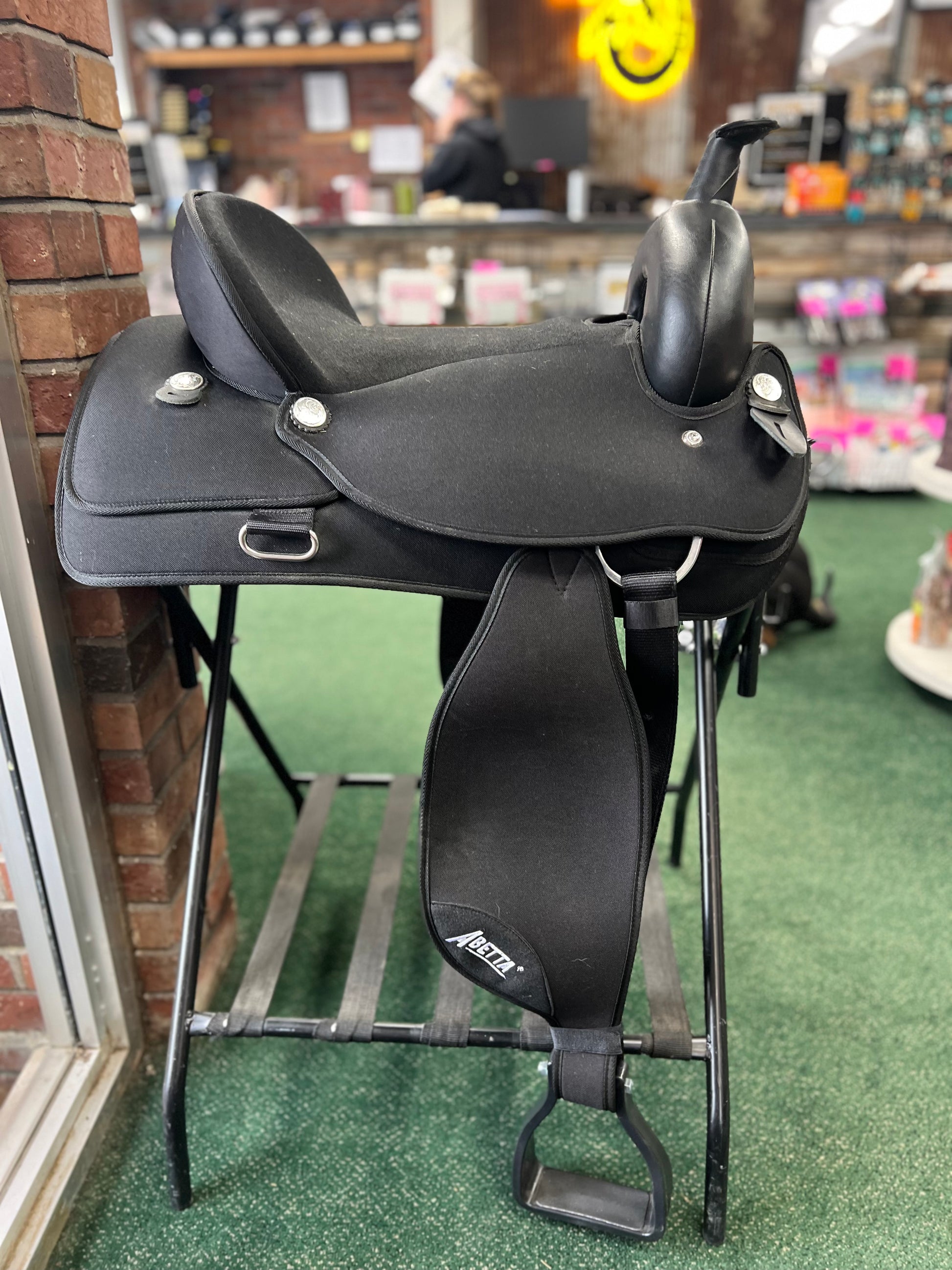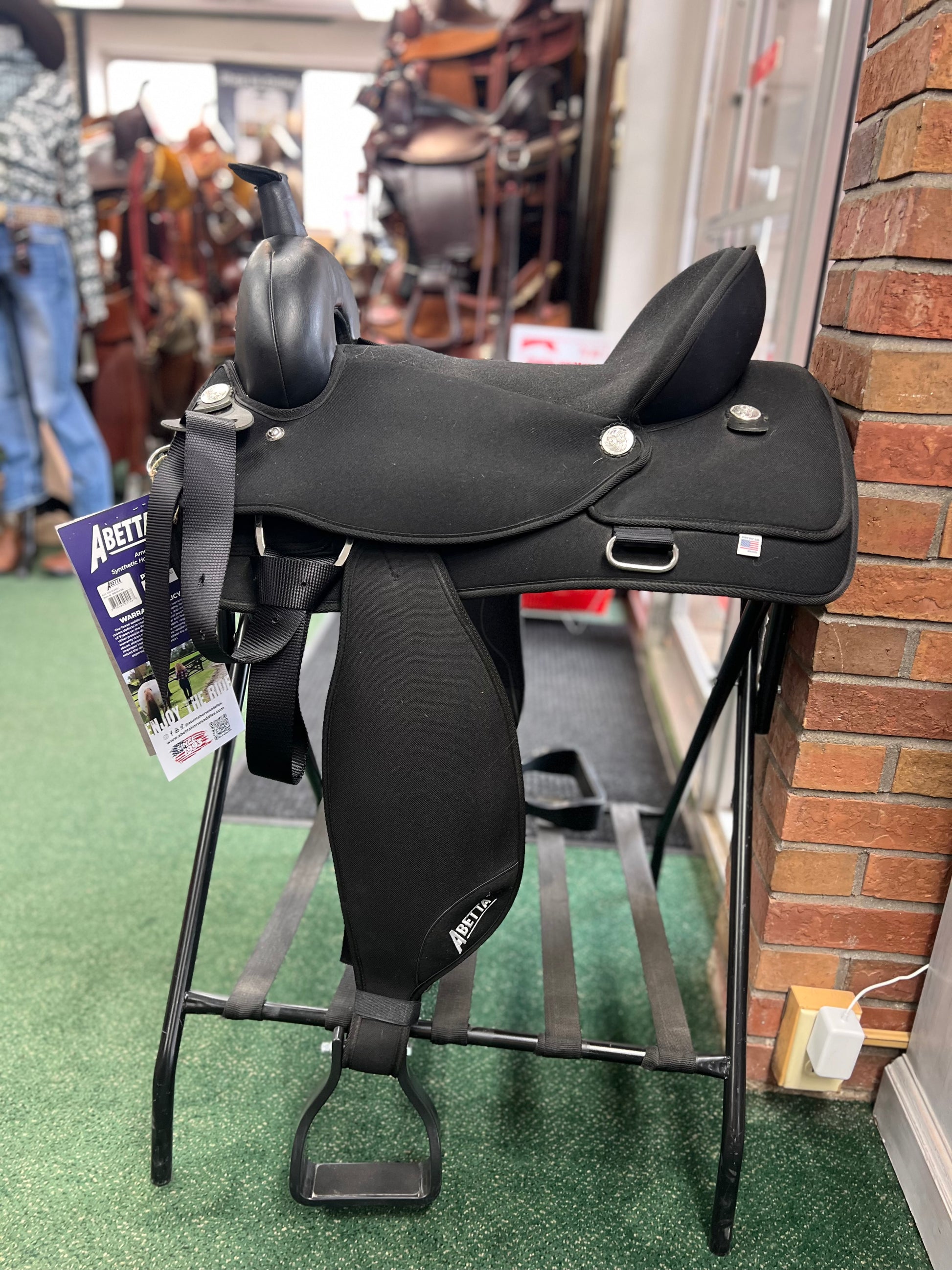 The Abetta® All-around features large square squirts with rugged 1000 denier nylon over shock absorbing foam, nylon rigging and stainless steel dees. It´s deep seat gives the rider a comfort experience during long trail rides.