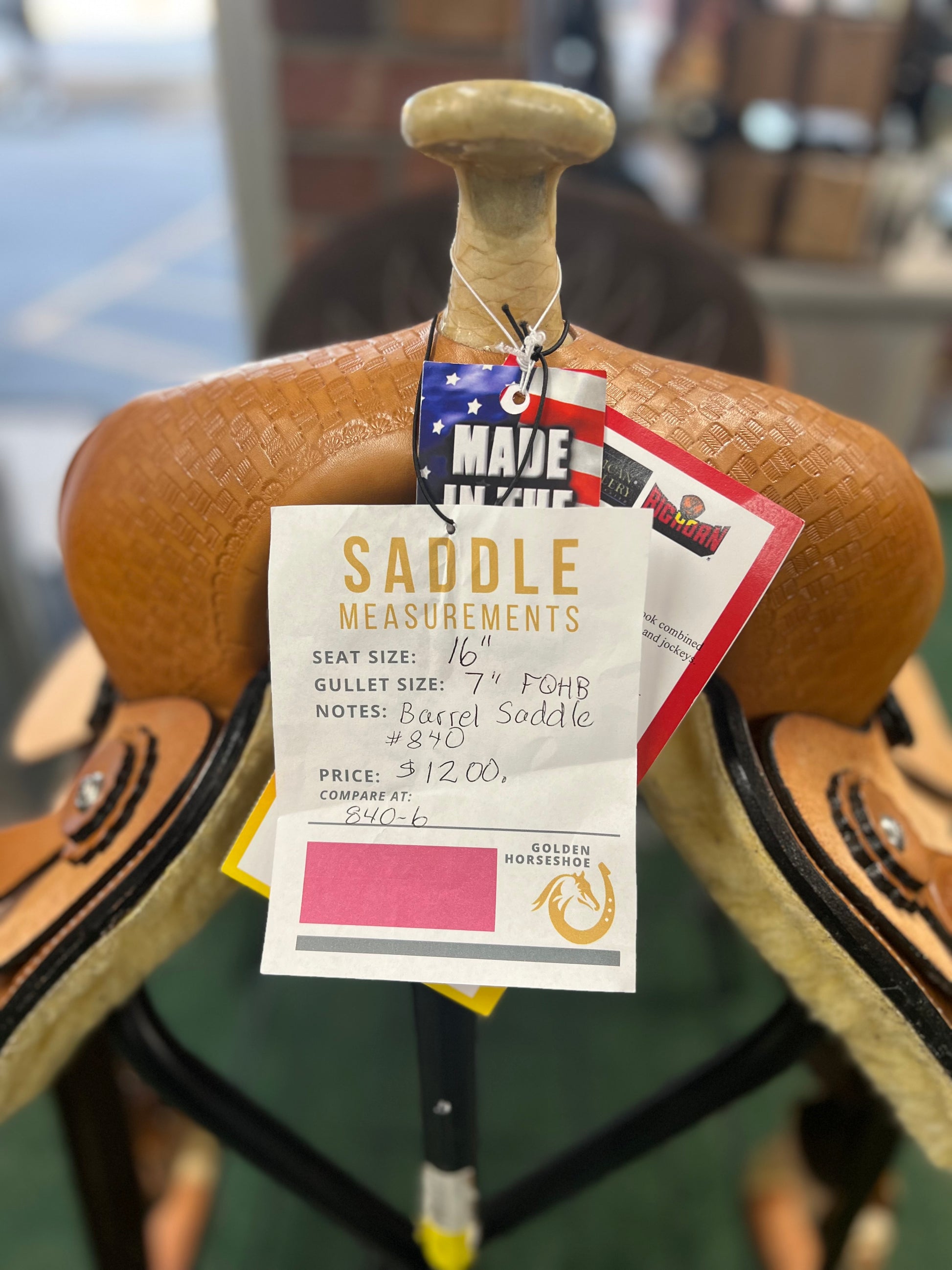 The 16" Best Deal Racer from American Saddlery is truly the best steal you can find. This barrel racing saddle brings you all the quality features that make you feel safe, secure, and stylish! Combo tooling patterns and silver conchos bring even more flare to this durable speedster.