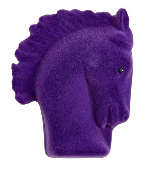 "Child safe" silver-plated horseshoe necklaces. Gift boxed in colorful, velour horse head box.