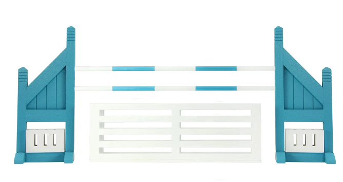 Our brush box jump has been given a makeover! This charming turquoise and white wooden jump includes 2 standards, 3 brush boxes, and 2 adjustable poles. All you need to do is add flowers and greenery to personalize it for you! Horse, greenery, and flowers not included.