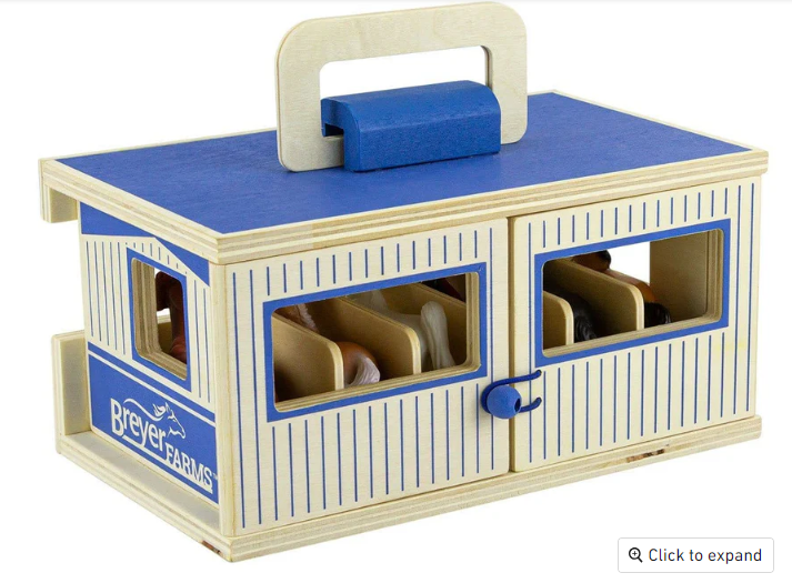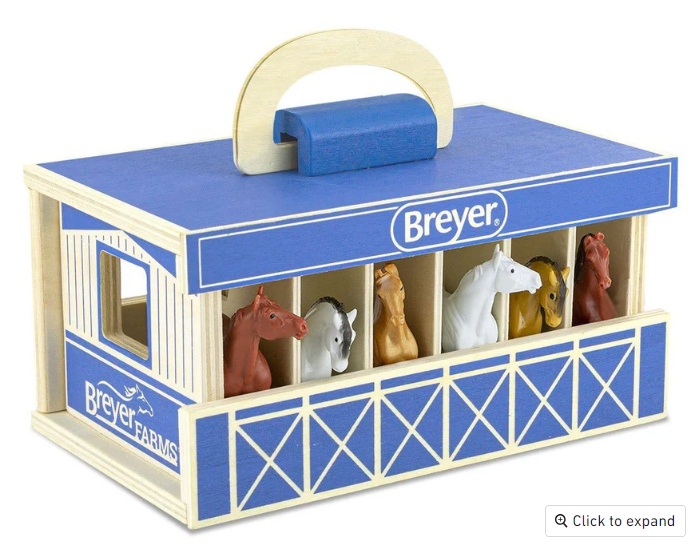 Play and go! This high quality wood stable comes complete with 6 Stablemates horses. Designed to be easy for small hands to carry, the wooden carry case makes the perfect take-along toy! Stablemates | 1:32 Scale | Ages 4+