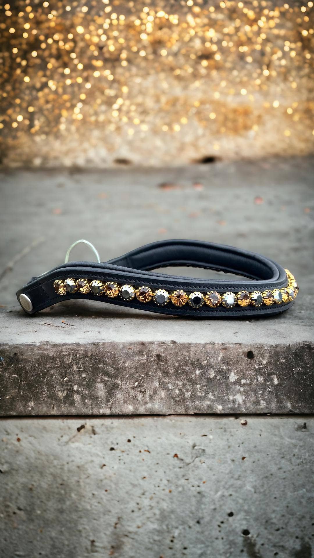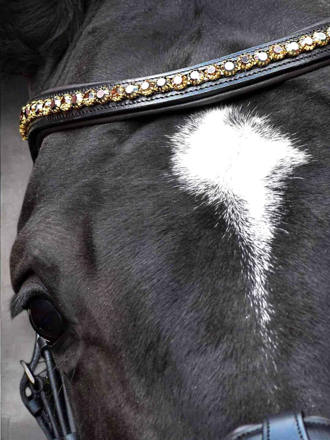 The browband is adorned with two different crystals: Preciosa in smoked Topaz and Stellux in jet hematite, creating a sophisticated, eye-catching look.