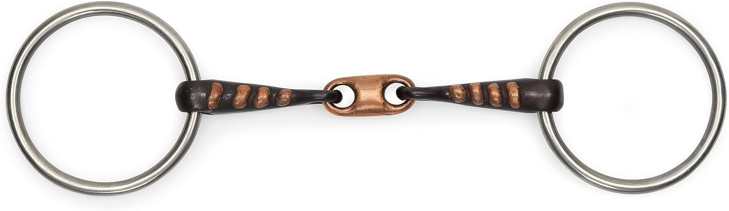 The sweet iron and copper combination used in this training bit provides a warmth for the horse which encourages salivation and gives a pleasant taste. Mouthpiece thickness: 12mm. Cheek height: 65mm.