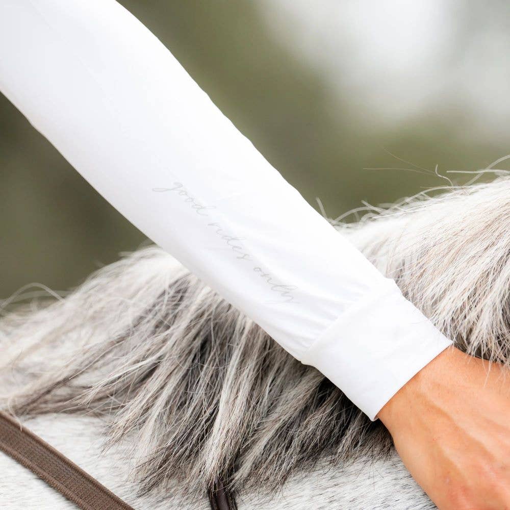 This favorite has been updated with ultra cooling, silky soft, ice-feel fabric - perfect for your summer rides! Mesh panels under the arms offer extra breathability, soft cuffs for comfort, and an ideal length for tucking into breeches. Simple and sophisticated, the elegant lines of this top are classy and incredibly flattering.