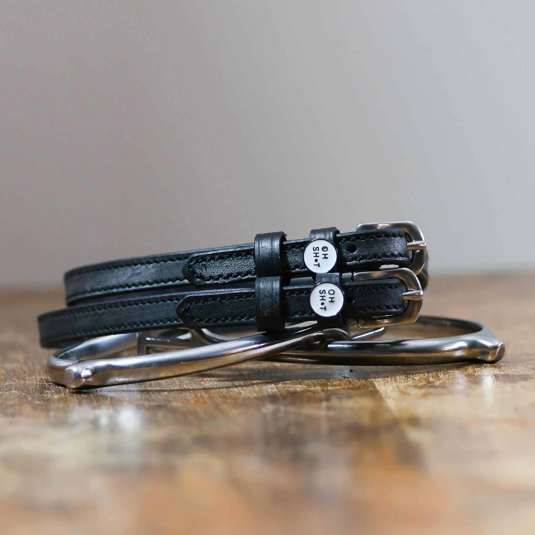 We use strong durable leather to ensure your straps don't stretch but still fit into the slots on your spurs. Accessorizing your equipment with fun charms may lead to improved happiness, smiles and good rides.