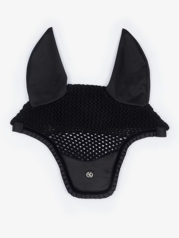 Featuring a hand-knitted crochet body, this fly hat offers a classic, refined appearance while maintaining breathability and comfort. The elastic ears are shaped for a secure, contoured fit, allowing freedom of movement while helping to reduce distractions from insects and noise.