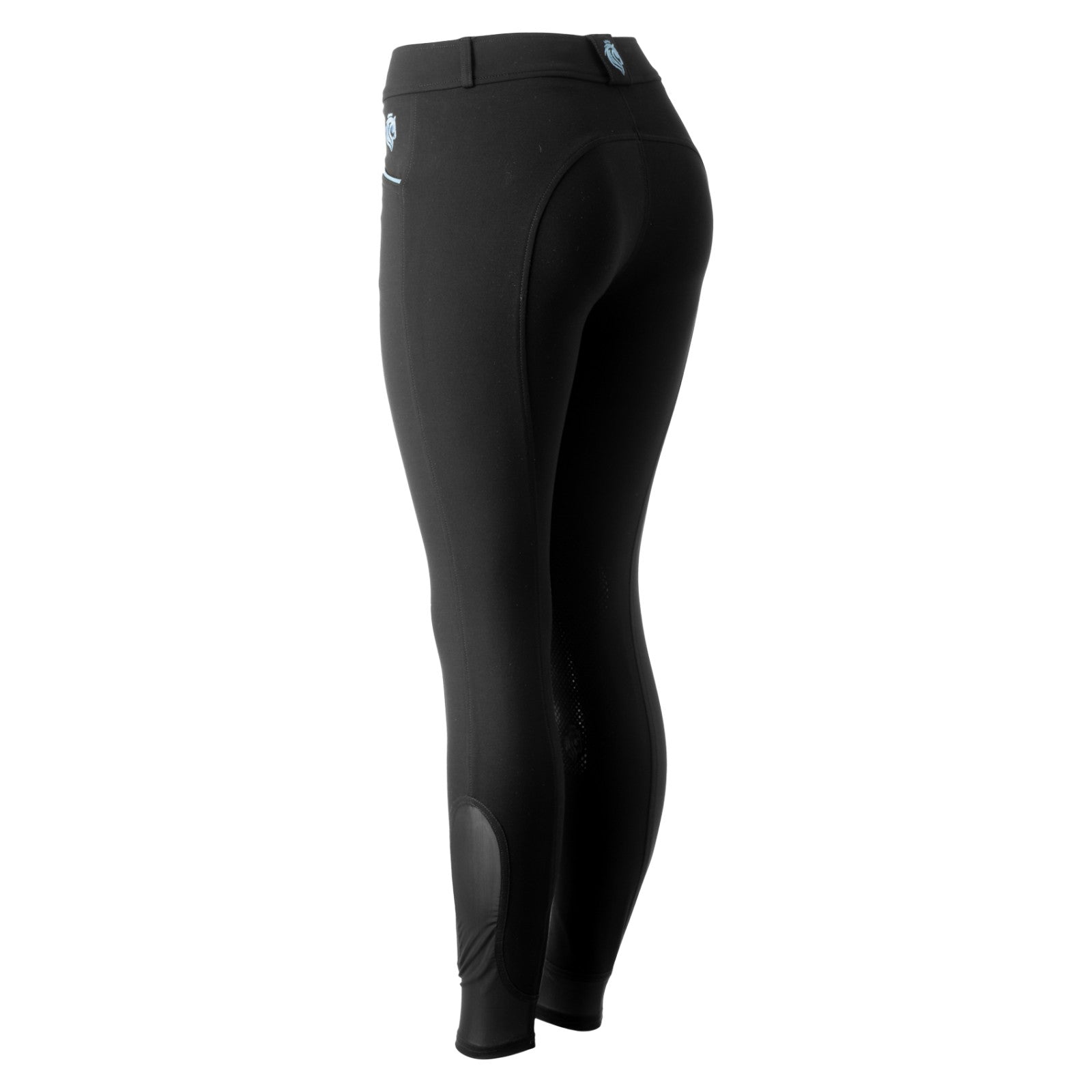 - Mid-rise fit, flattering waistband, slightly higher in the back for in-saddle comfort, and silicone grip inside to keep shirt neatly tucked in