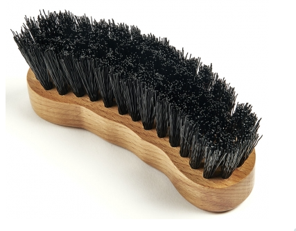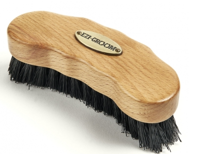 Feeling natural in the hand, the EZI-GROOM Premium hoof brush is a smart addition to any horse grooming bag. A beech block carved with finger indents is easy to grip, the brass badge gives an extra smart feel. Hardwearing stiff synthetic bristles easily brush away dirt and dried mud from your horse's hooves. An attractive lacquer finish that protects the carved beech block for a long life. Dimensions: L. 125mm x W. 40mm, 25mm firm bristles.