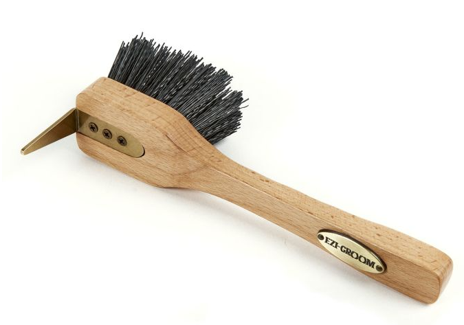 Groom Premium Hoof Pick is an excellent addition to any horse’s grooming box. Finger indents for grip Beech handle Metal angled pick Hardwearing synthetic brush for cleaning Dimensions: L. 200mm x W. 40mm max, 40mm firm bristles