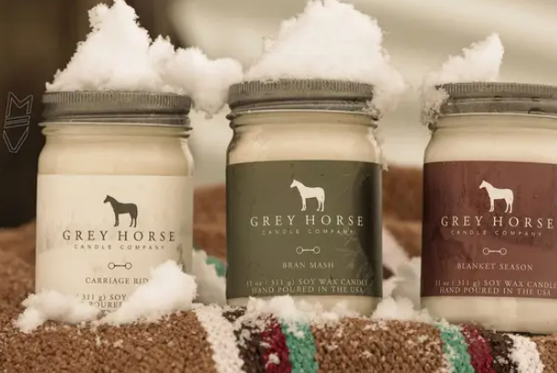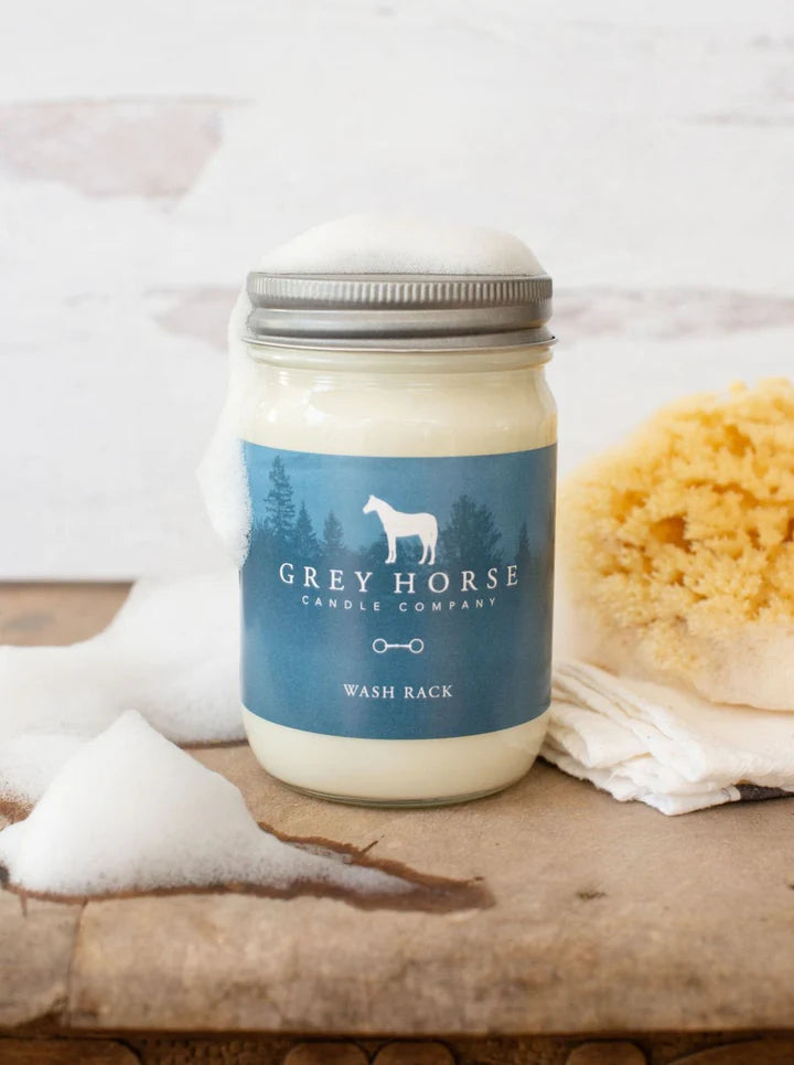 These signature jar candles will give you 70+ of burn time. When done, pop out the wax and reuse these sturdy canning jars to hold braiding bands, studs, and other random barn objects!