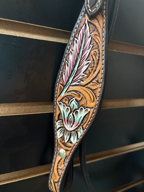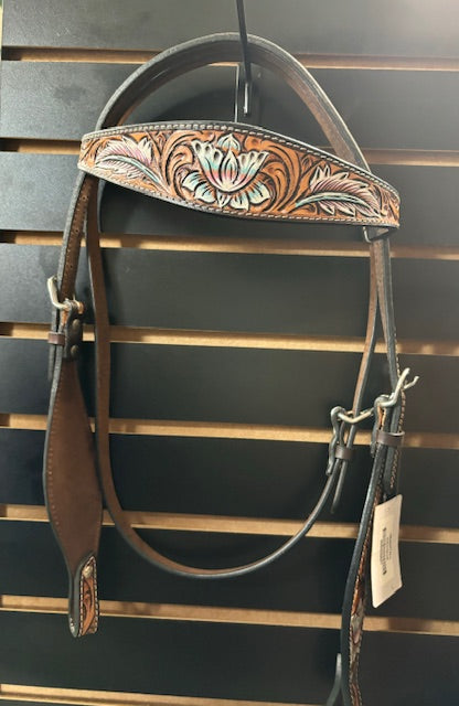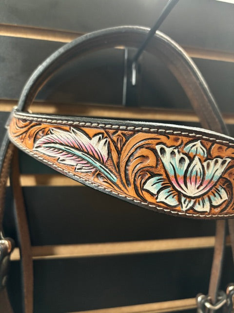 Hilason Tooled Leather Browband Headstall - Feather/Floral