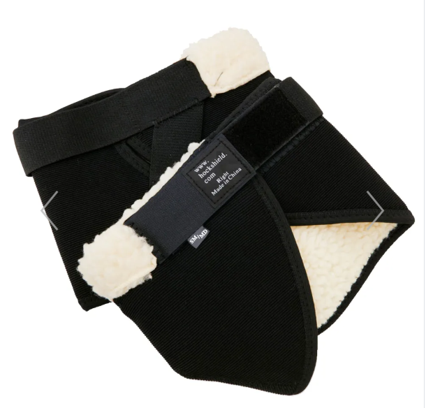 Use for horses with arthritic hocks to prevent chill. Thin neoprene and double layer of fleece make a comfortable but tough boot that can be worn full-time for horses with deep chronic sores. Outer shell is made of tear-resistant neoprene; lining is soft fleece. Small/Medium measures 13"-14.9"; Large/X-Large measures 15"-16.9". Black.