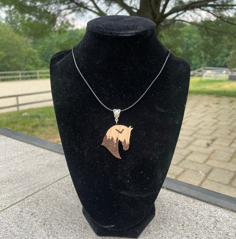 Add a touch of nature and elegance to your outfit with this stunning Horse-shaped necklace made from high-quality red alder wood. The intricate scene inside the pendant captures the essence of wildlife and makes a perfect gift for nature lovers and Horse enthusiasts.