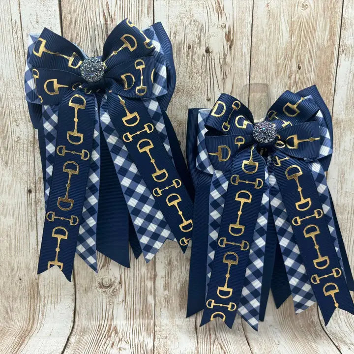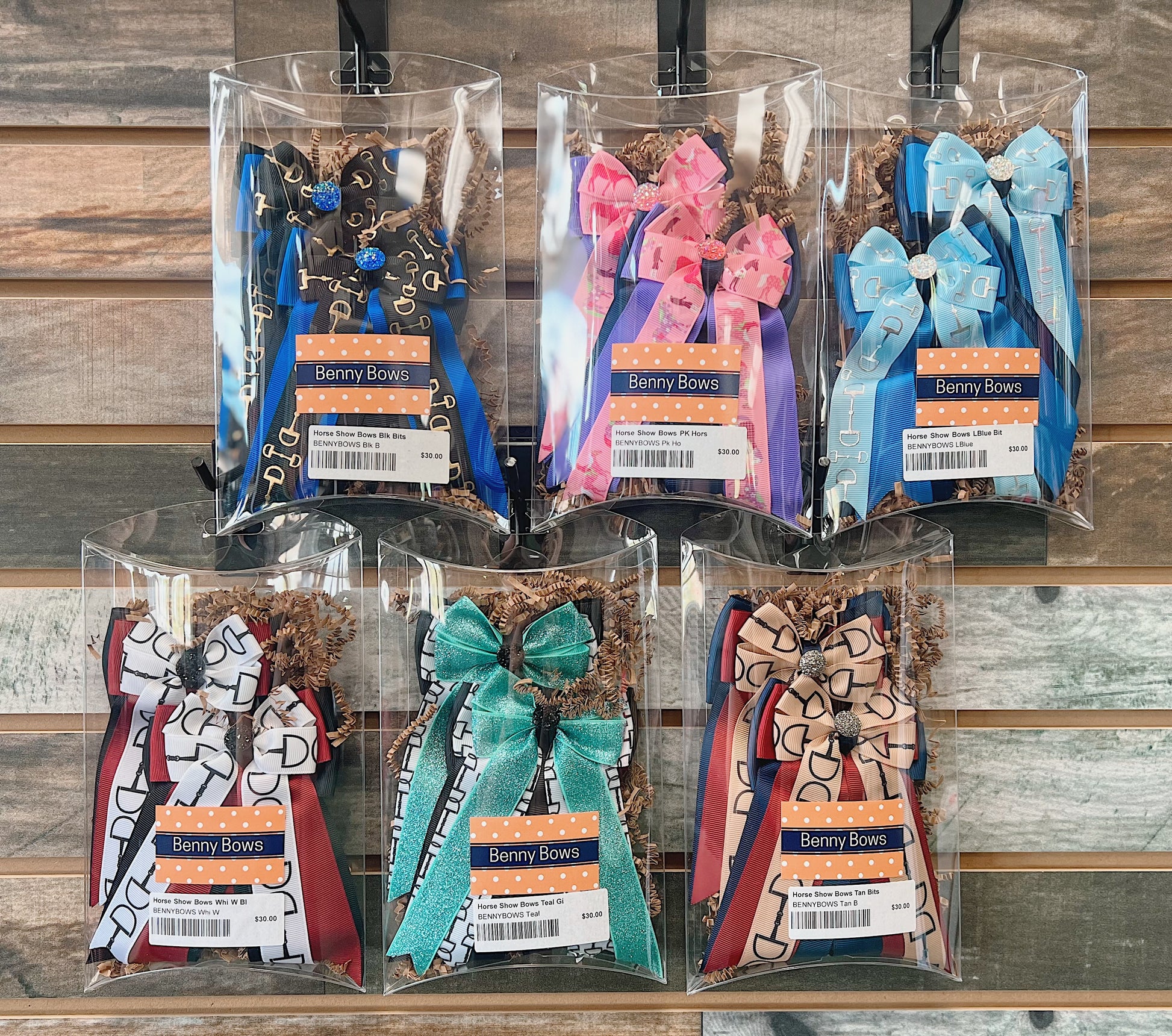 The most perfect set of bows to standout in any show ring! From short stirrup divisions to lead line, these bows will make any young rider look and feel fabulous! These bows are beautifully handcrafted and finished with a metal alligator clip in the back. Available in many adorable colors and patterns!