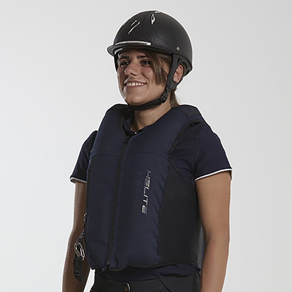 Discover the new multi-discipline Helite equestrian air vest. Built to meet the requirements of cross-country and show jumping disciplines. The HybridAir airbag vest can be worn over a hard shell body protector or regular apparel.