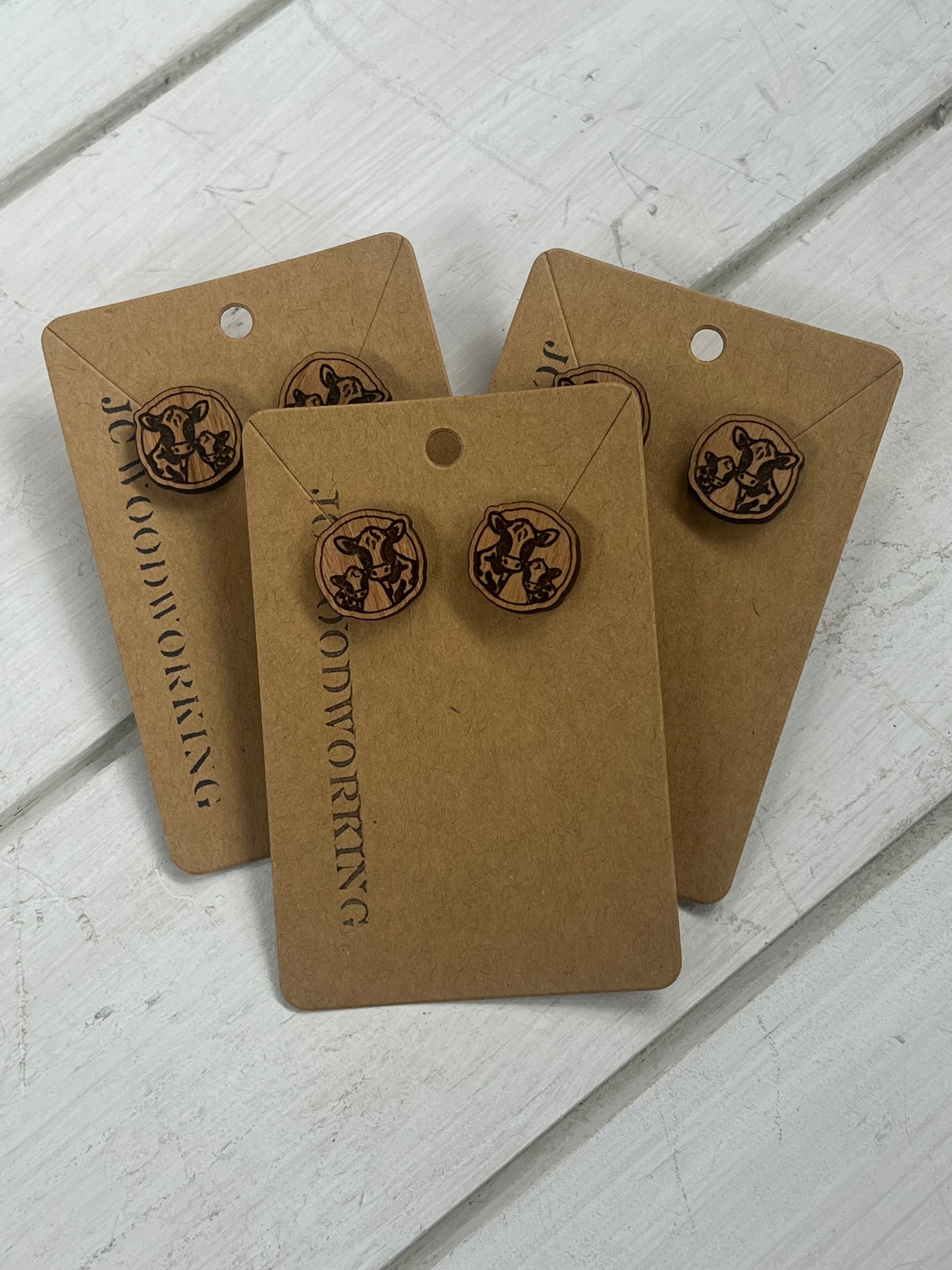 JC Woodworking Cow in Circle Post Earring