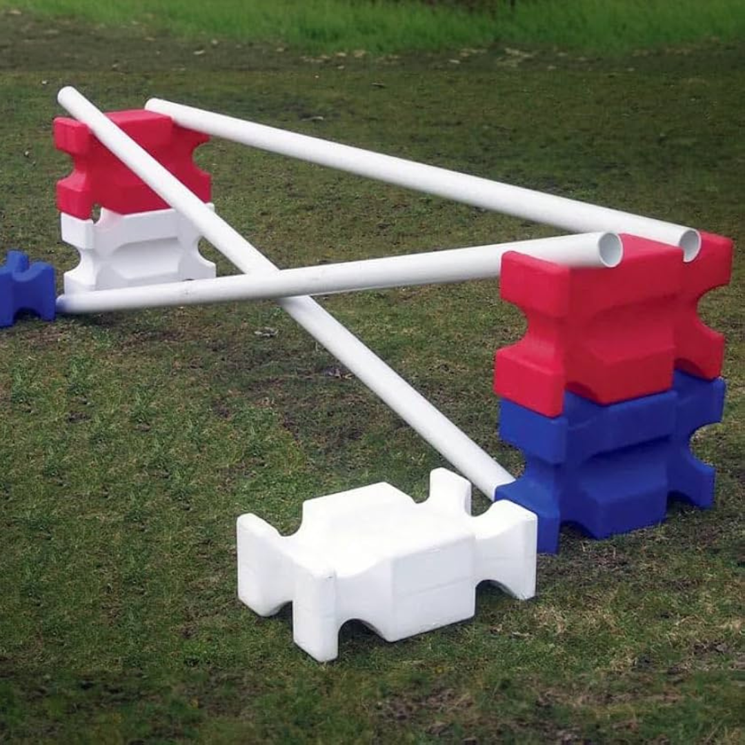 Jump Blocks are a must have for schooling and training exercises. Easily portable, the unique design of these blocks can be stacked two ways, either laying flat or standing upright for nearly an unlimited variety of positions and configurations. Made of single mold polyethylene, these jump blocks will last you for years.