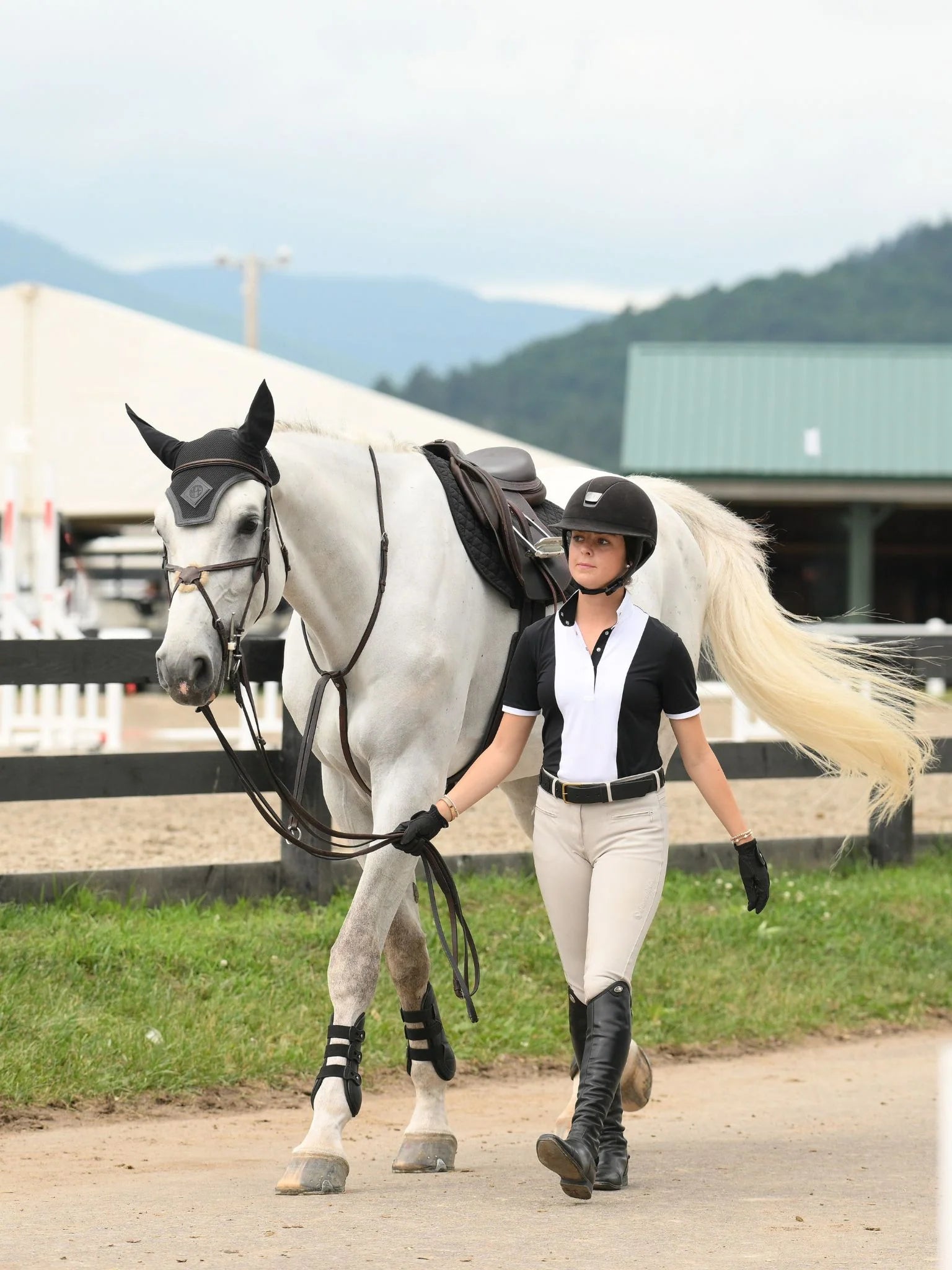 This performance show shirt delivers a crisp, classic look with modern comfort. Featuring a white Talent Yarn front panel and a structured white cotton collar, it’s designed to look sharp in the ring while allowing full freedom of movement.